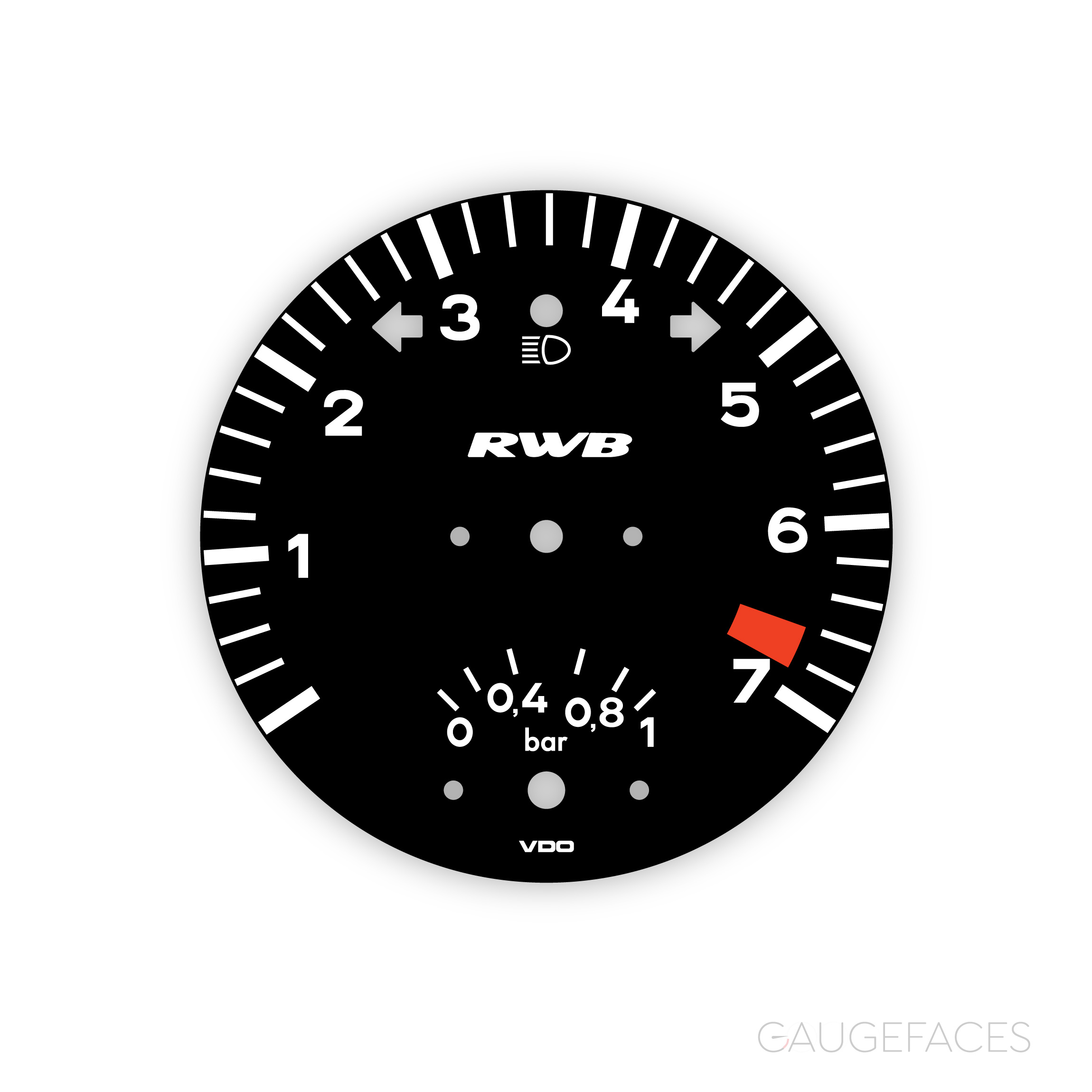 Custom Order: Porsche 911 Turbo 3.6 Gauge Faces Set – KM/H – White (Invisible warning lights)
