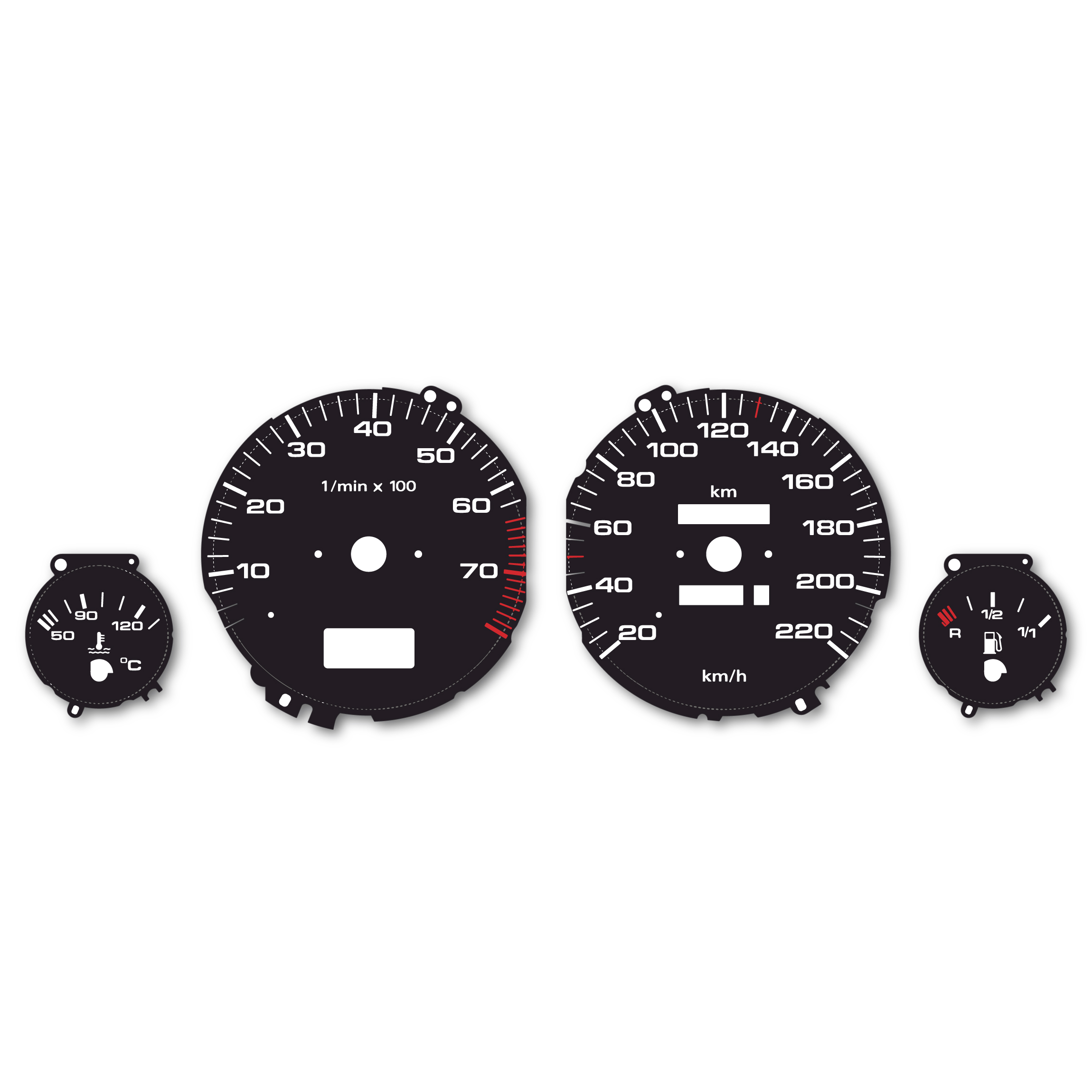 Gauge Faces for Audi 80 – 8000 RPM – 220 KM/H – Black with Audi logo