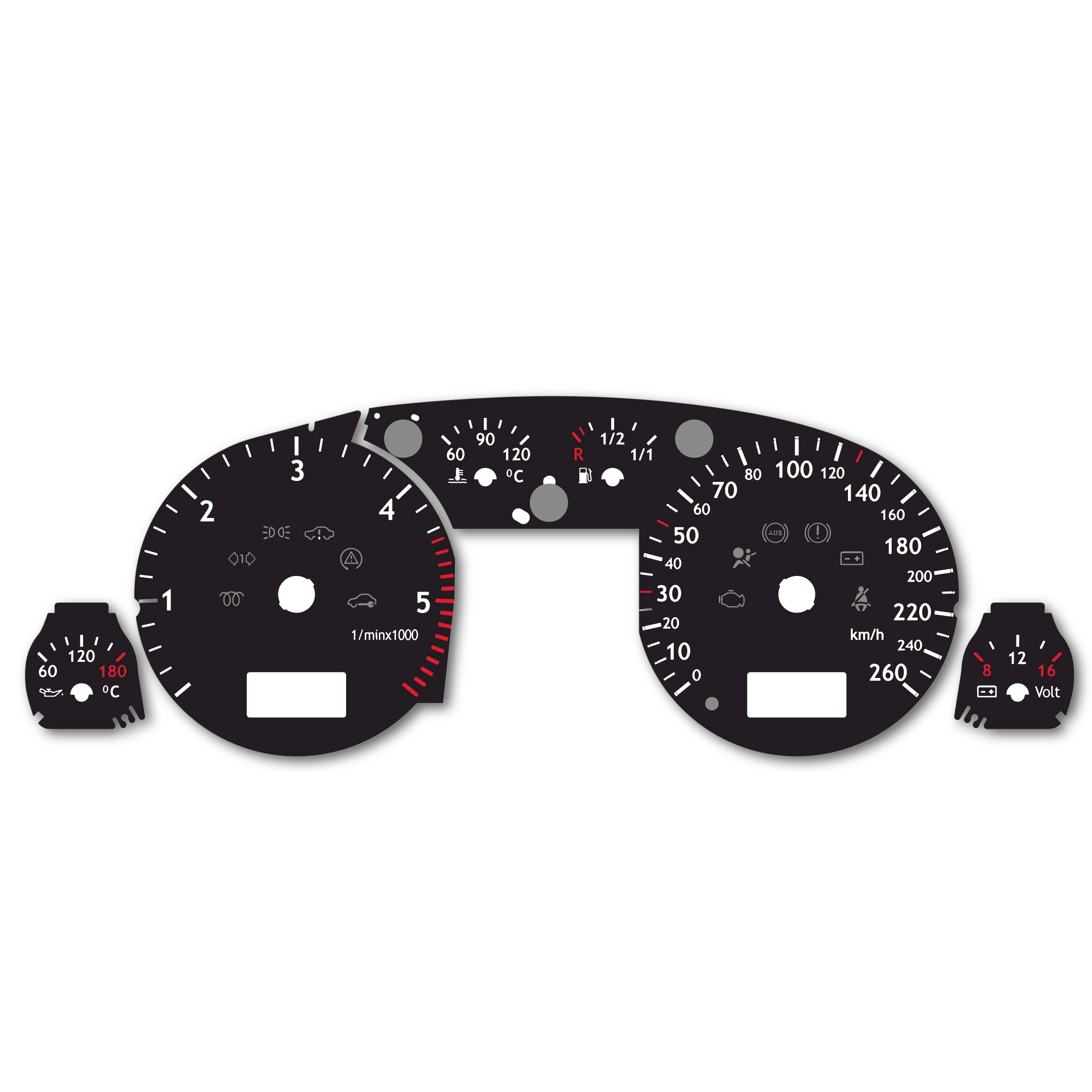 Gauge Faces for Audi A4 – 6000 RPM – 260 KM/H – Black with Audi logo