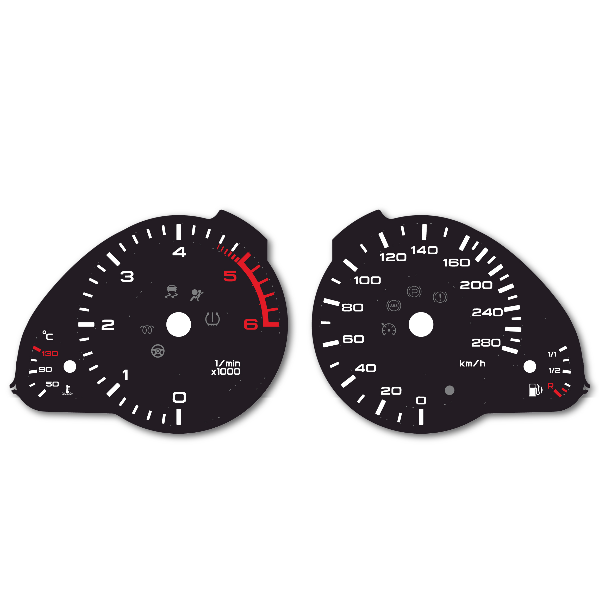 Gauge Faces for Audi A5 – 6000 RPM – 280 KM/H – Black
