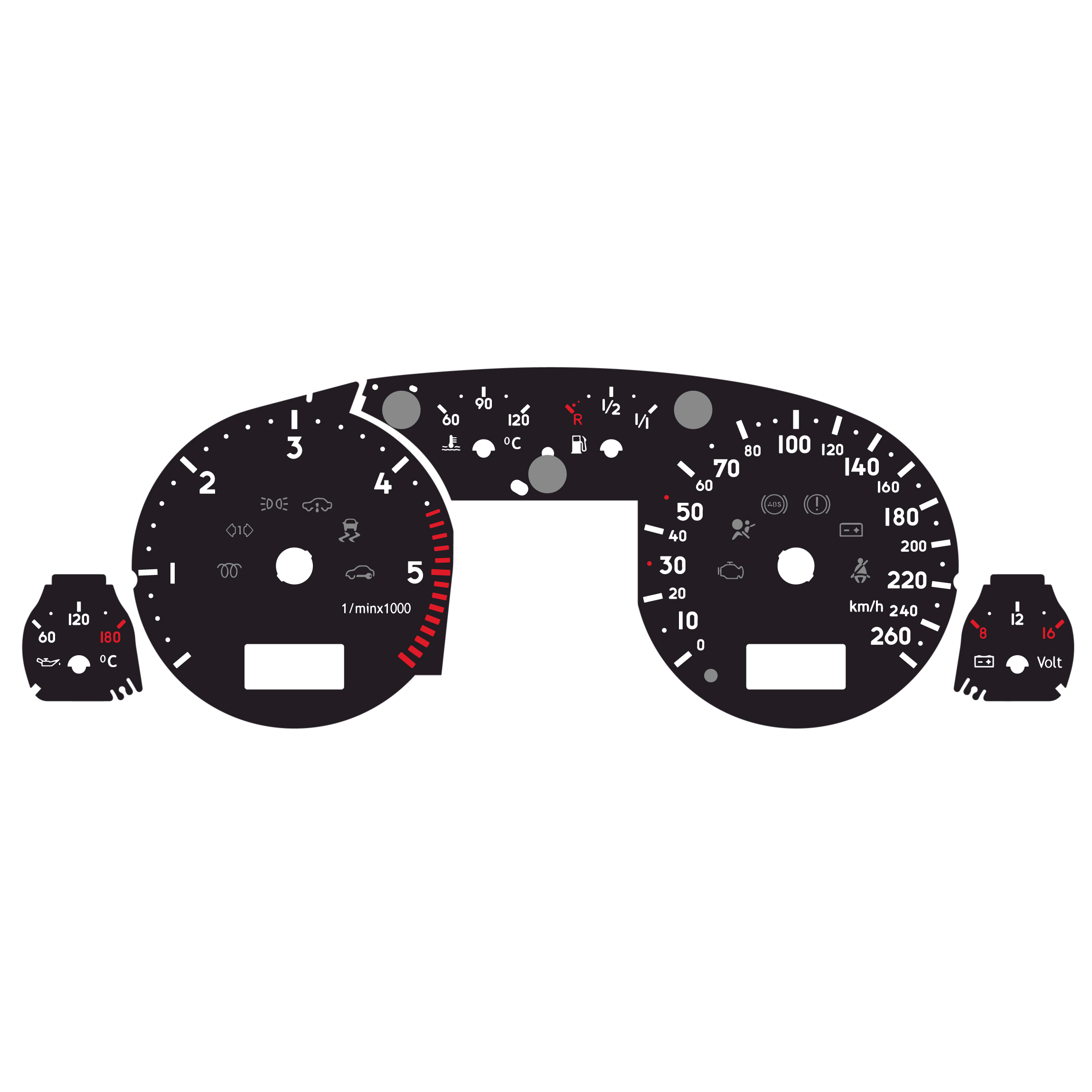 Gauge Faces for Audi S6 – 6000 RPM – 260 KM/H – Black