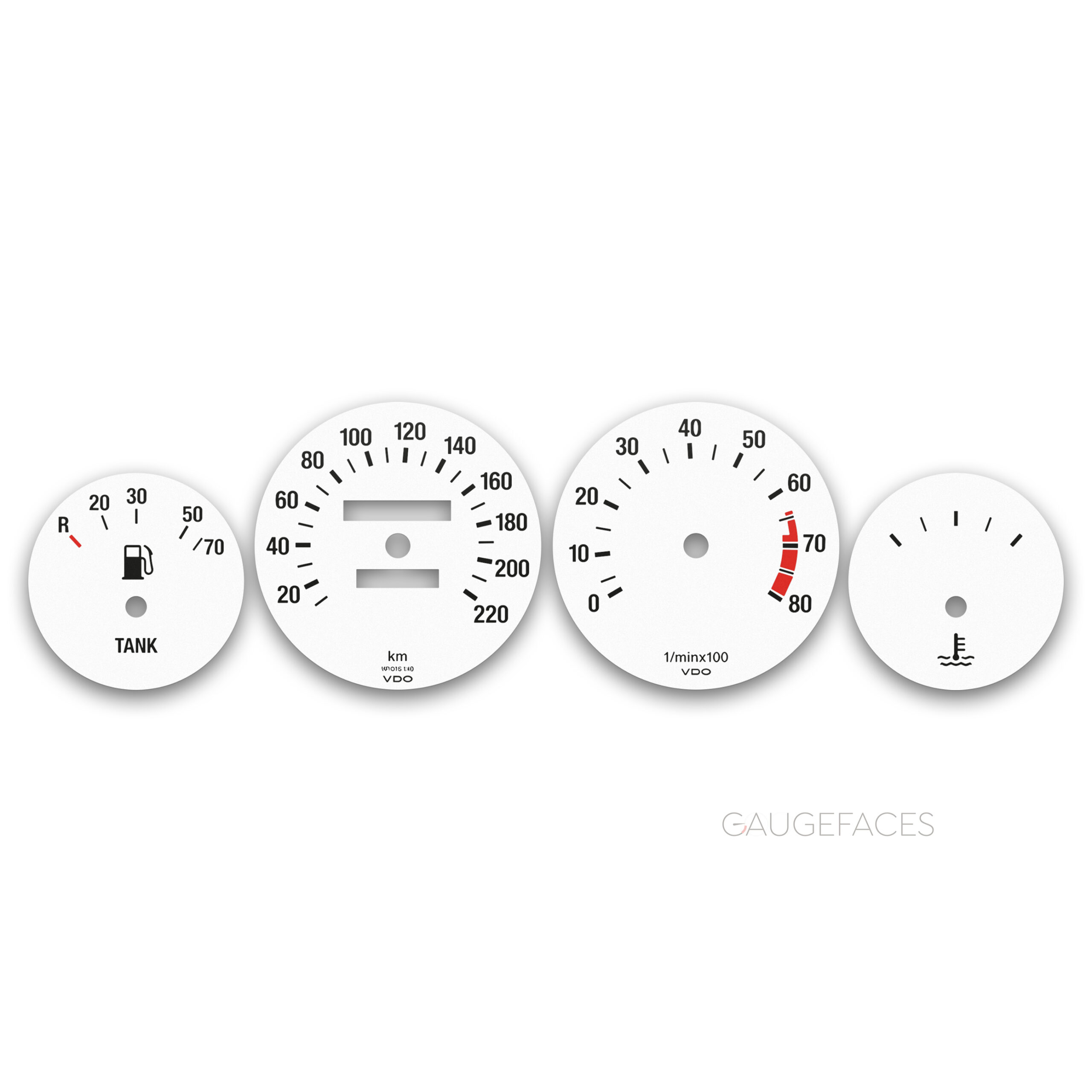 Instrument Cluster Gauge Faces for BMW 5 Series E12 (1972-1981) – 8000 RPM – 220 KMH – White.
