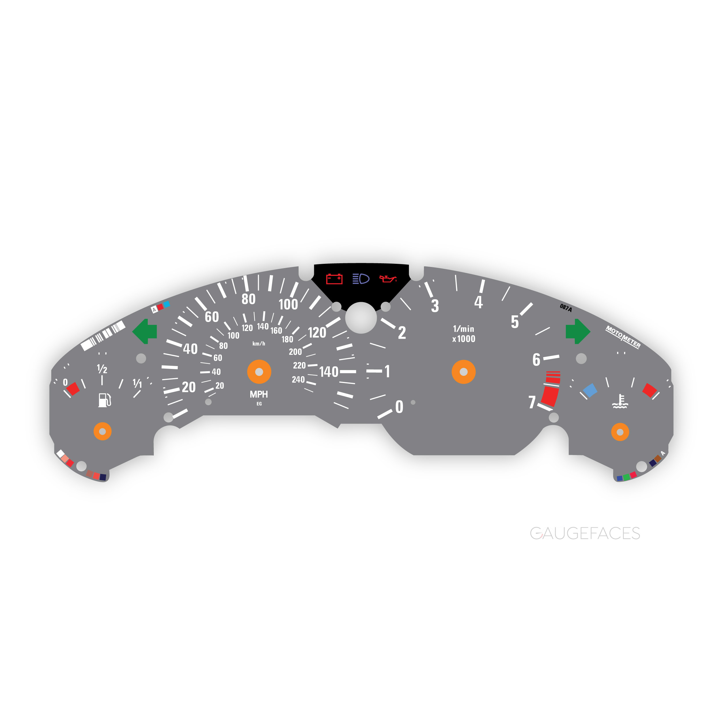 Gauge face for BMW Z3 (1995-2002) – 140 mph / 240 km/h speed range, 7000 RPM – Light Gray.