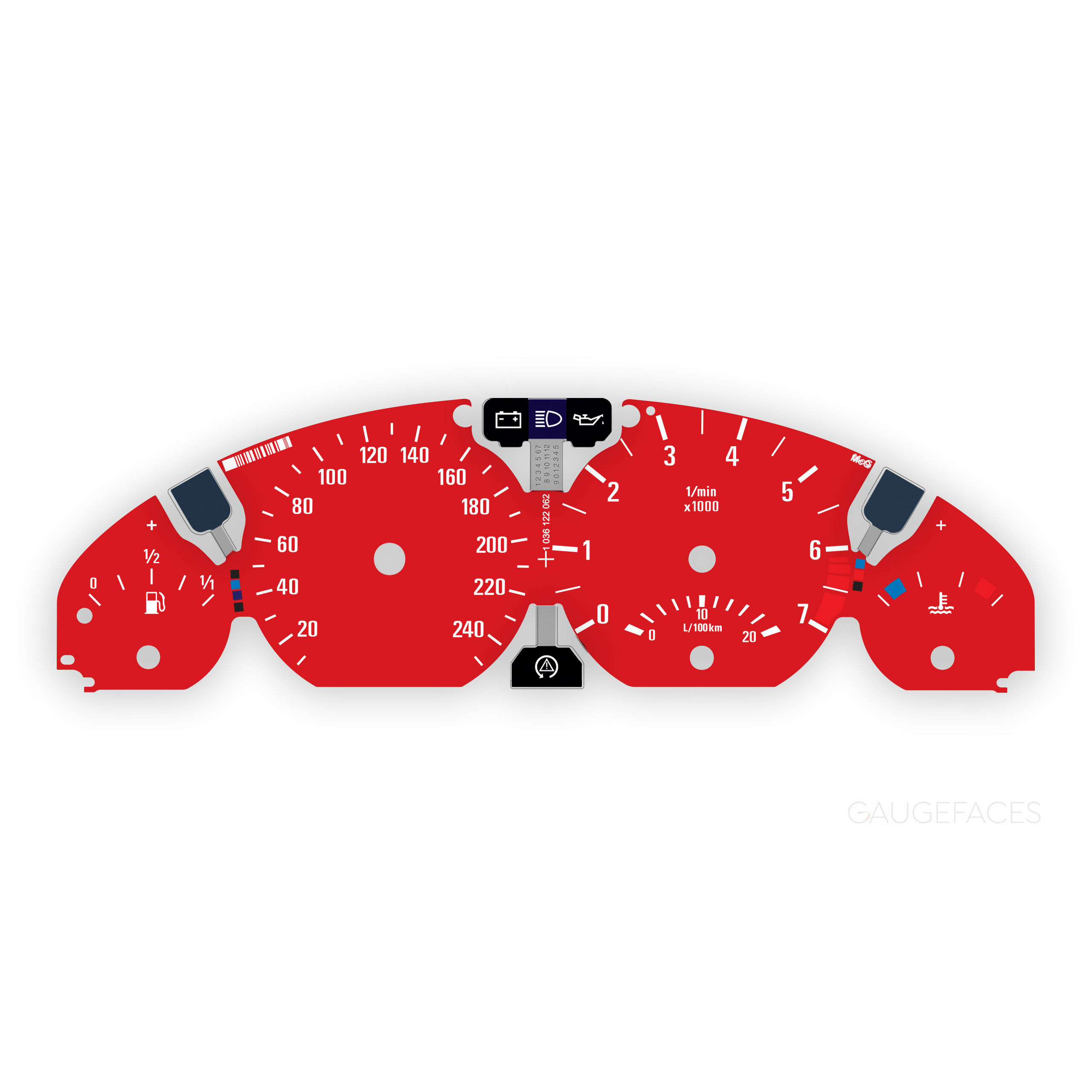Instrument Gauge Face Replacement for BMW E46 – 140 MPH / 240 KMH Speedometer, 7000 RPM – Red.