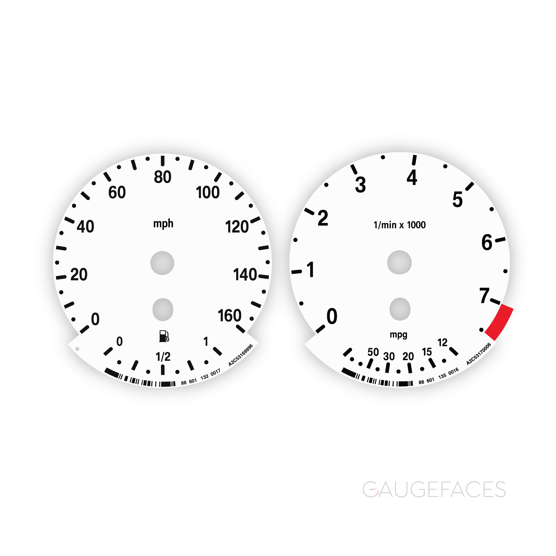 BMW M-Style Instrument Gauge Faces Replacement Dials – 160 mph speedometer + 7500 RPM tachometer – White.