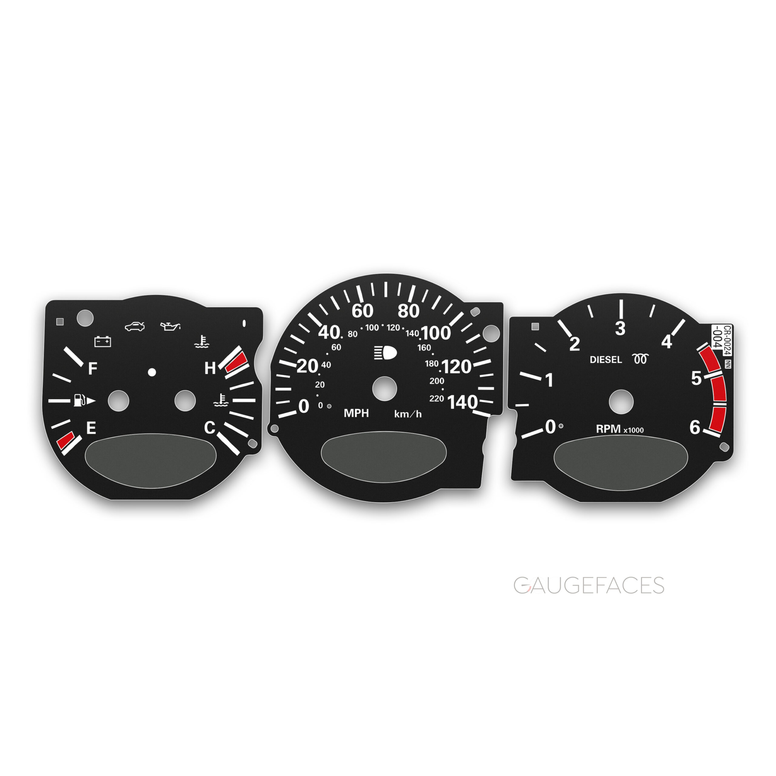 Printed directly on high quality dense plastic with UV printing technology for deep and rich colors. Laser engraving preserves details sharp and crisp. Anti-glint finish makes the surface matt and smooth. The gauge face is pre-cut with precision laser and ready to be installed. All warning lights and icons are the same as original and match OEM placement.
