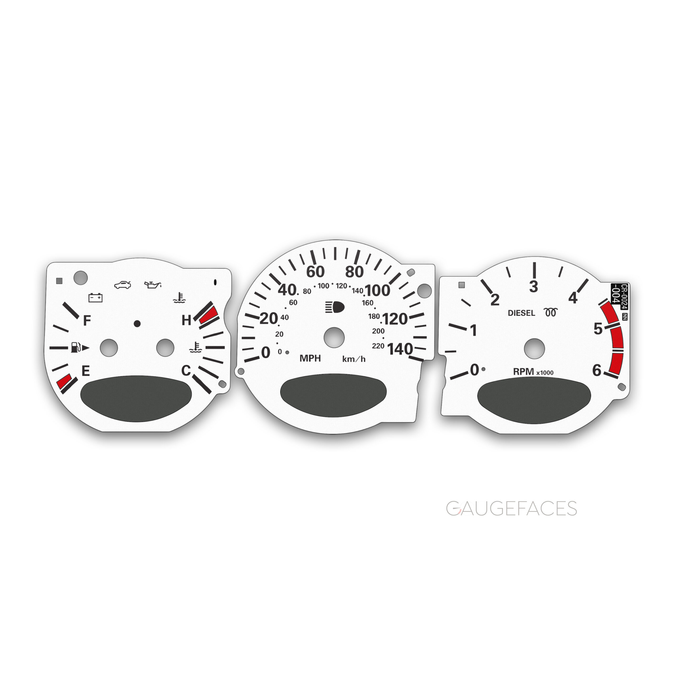 Printed directly on high quality dense plastic with UV printing technology for deep and rich colors. Laser engraving preserves details sharp and crisp. Anti-glint finish makes the surface matt and smooth. The gauge face is pre-cut with precision laser and ready to be installed. All warning lights and icons are the same as original and match OEM placement.