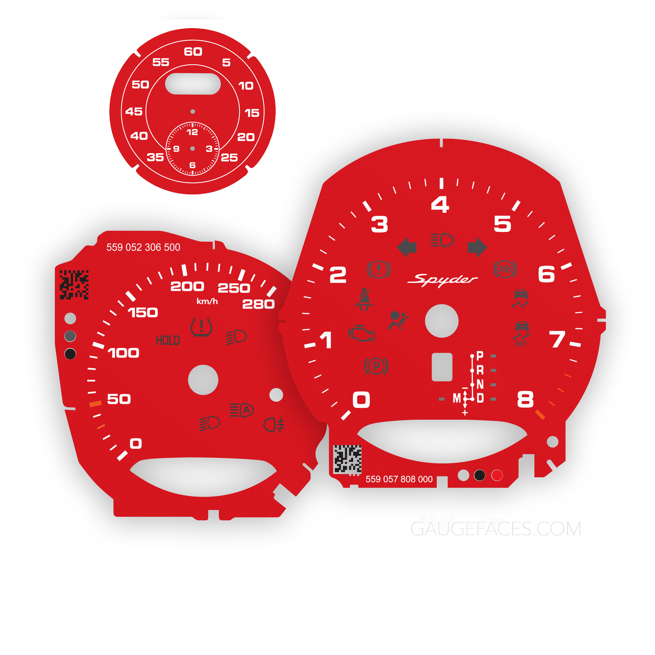 Custom Order: For Porsche 718 Boxster / Cayman 2.0L: Gauge Faces – AT – EU – Guards Red – Custom Logotype – Sport Chrono