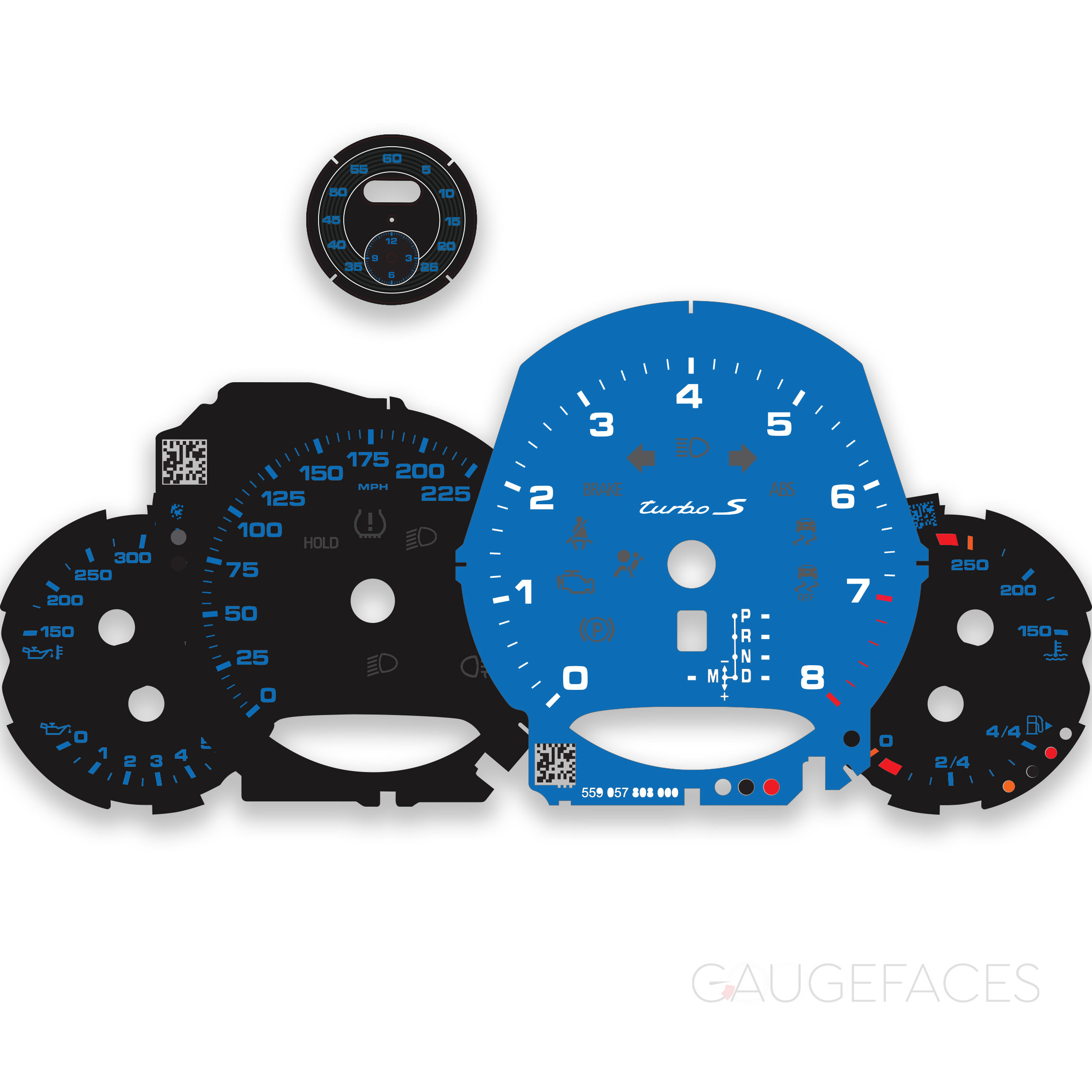 Custom Order: For Porsche 911 991 Turbo S: Gauge Faces Set – Black / Shark Blue – US – Sport Chrono