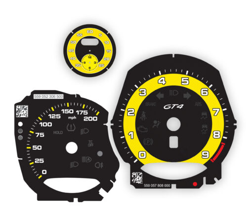 Custom Order: Porsche 718 Cayman GT4 Gauge Faces Set – UK-Spec – PDK – Acid Green