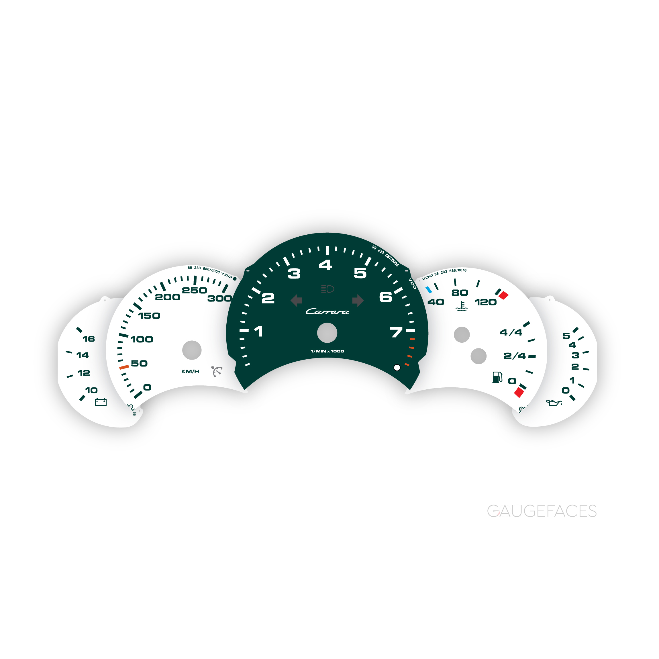 Custom Order: Porsche 911 Turbo 3.6 Gauge Faces Set – KM/H – White (Invisible warning lights)