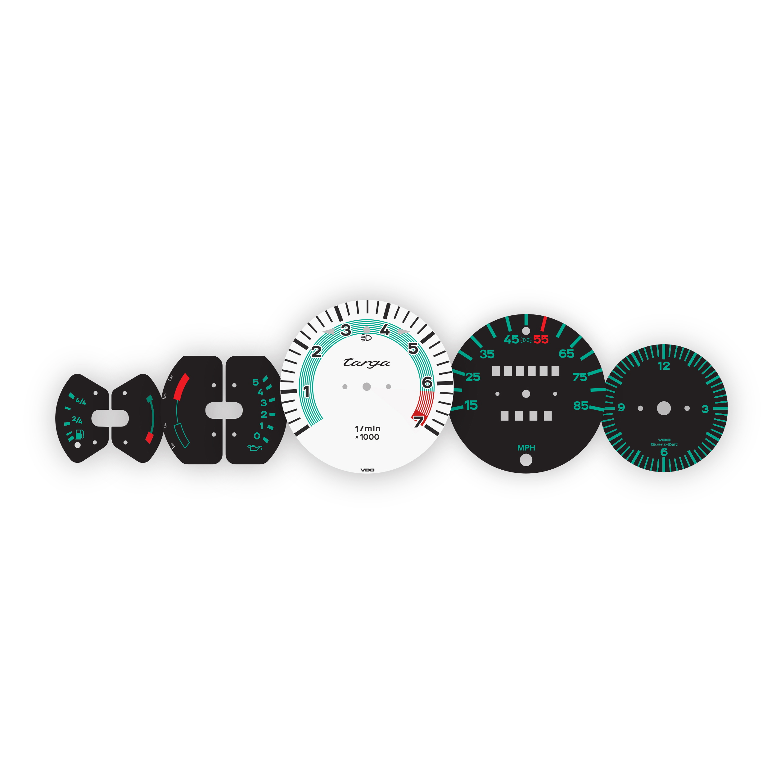 Custom Order: Porsche 911 SC Gauge Faces Set – 8000 RPM – Green / Black