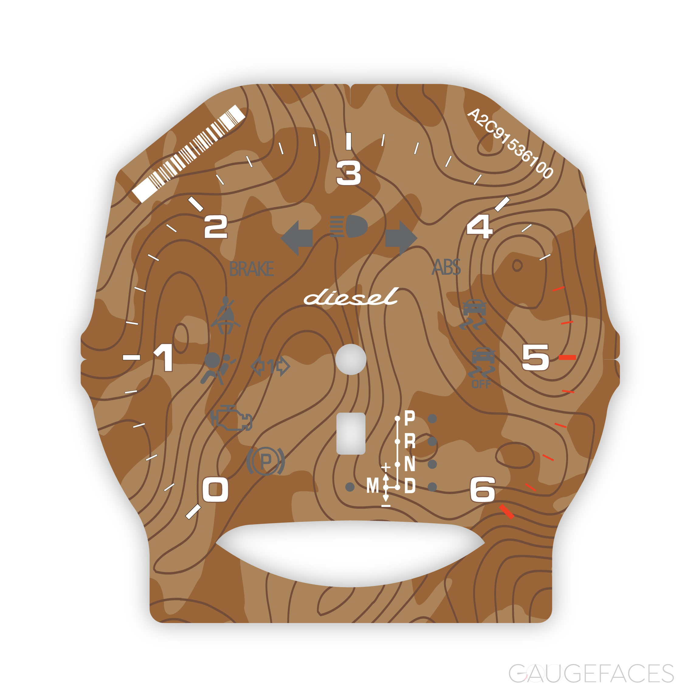 Custom Order: Porsche 958 Cayenne Diesel Gauge Face Tachometer – 6000 RPM – Topographical Map Design – Sand Beige