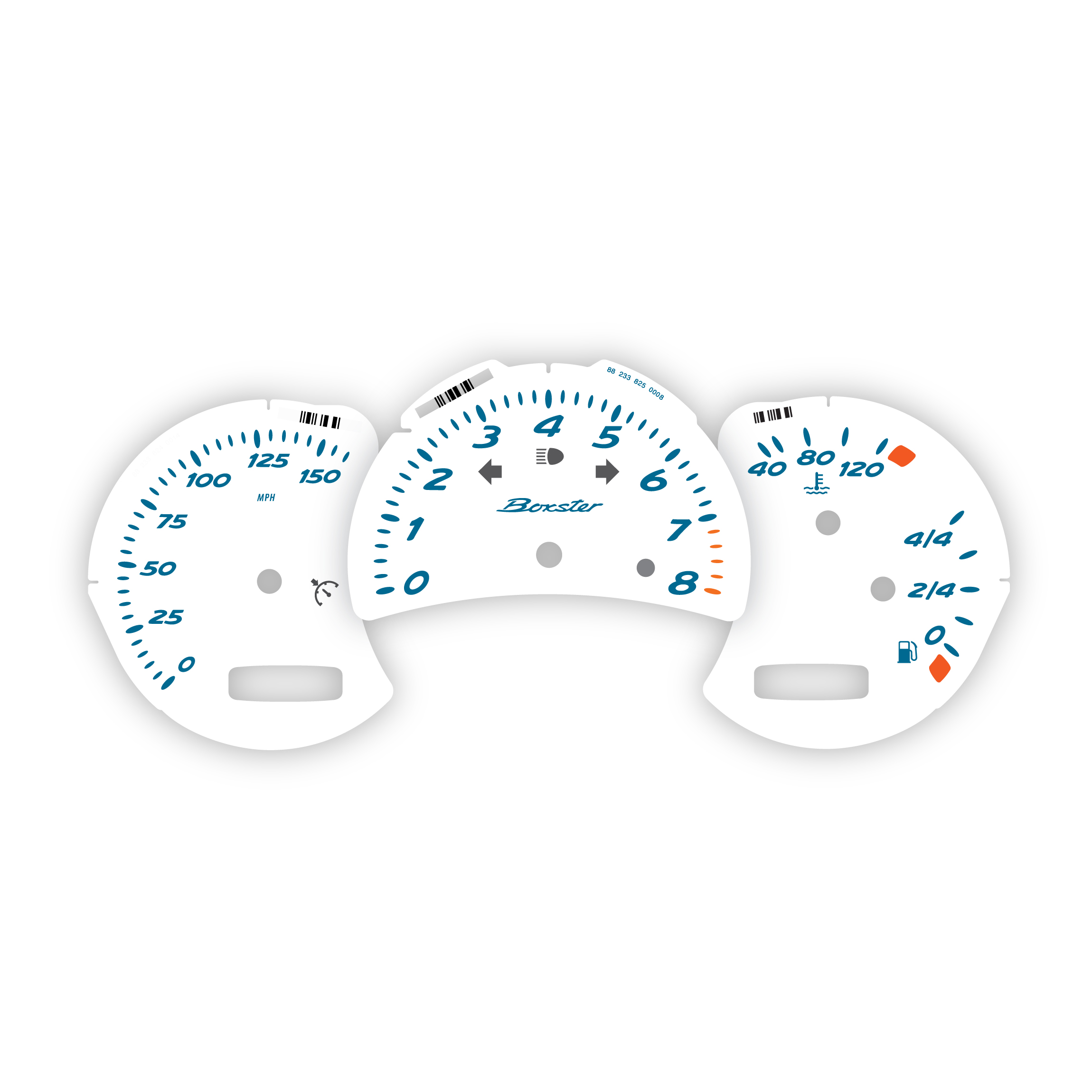 Custom Order: Porsche 986.2 2.7L Gauge Faces – White with Blue Lettering