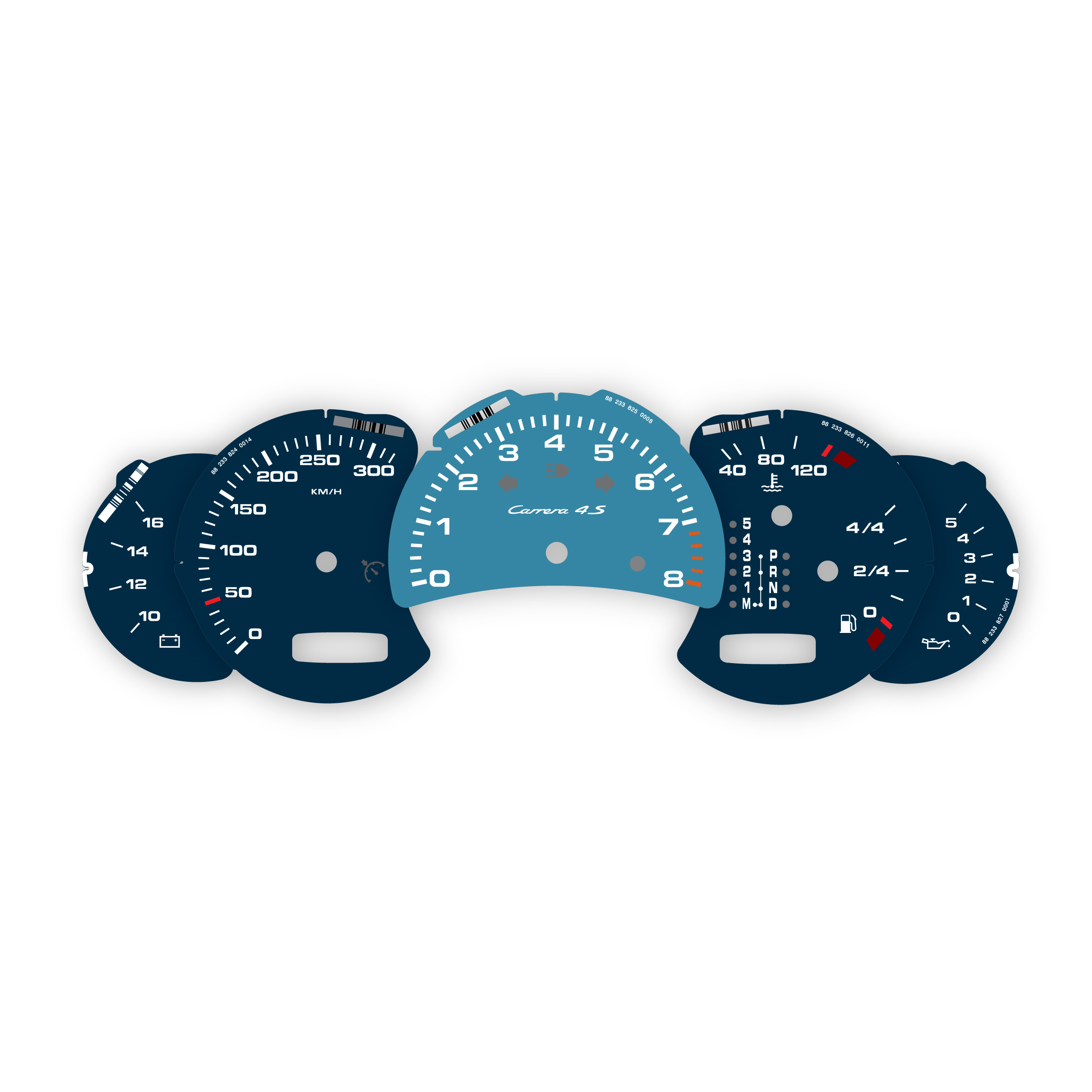 Custom order: Porsche 996 C4S Gauge Faces set – 8000 RPM – Manual – White