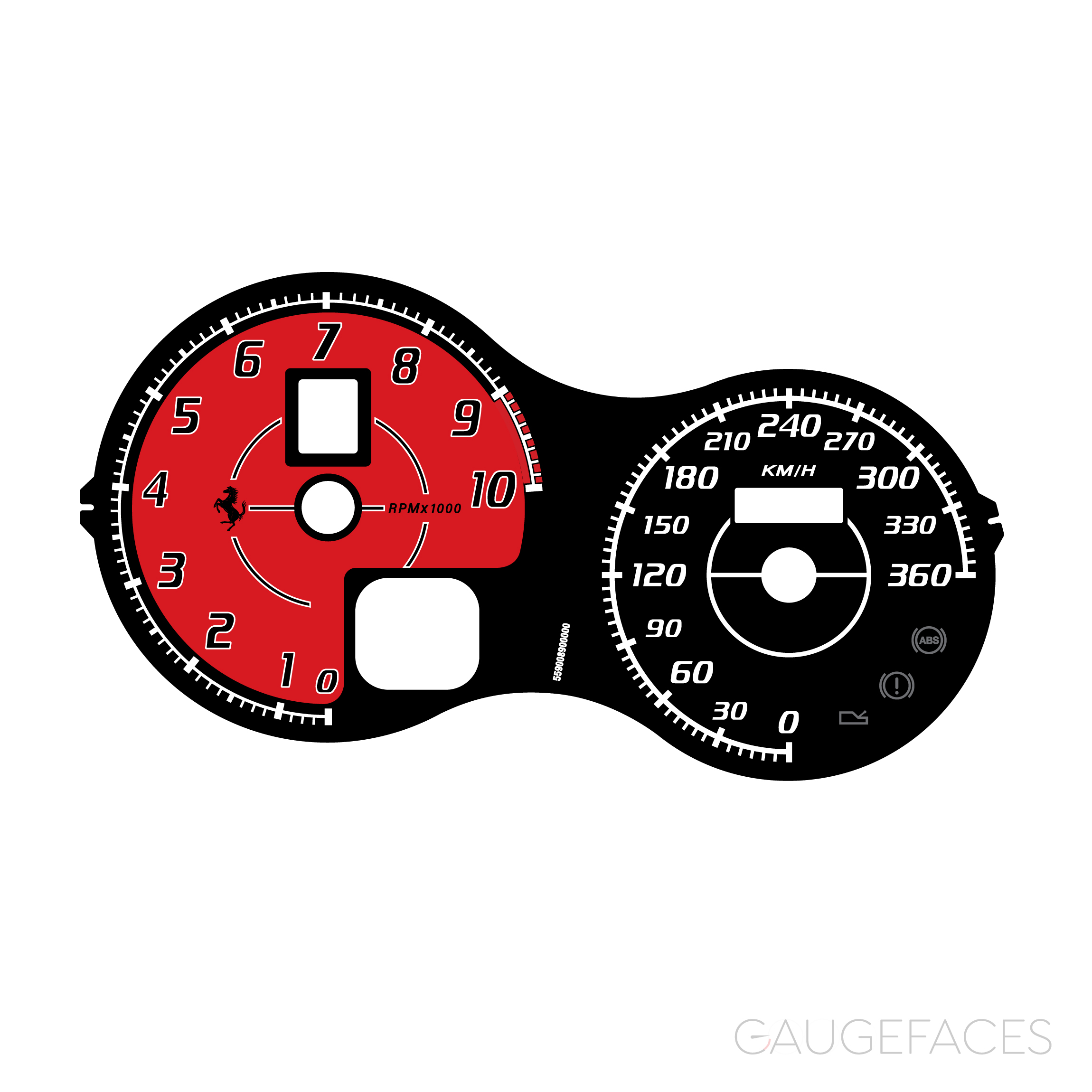 Ferrari F360 (Type F131, 1999-2005) / F430 (Type F131 EVO (F430 2004-2009) Dashboard Gauge Face – OPTIONS – Scuderia Look – Black / Red.