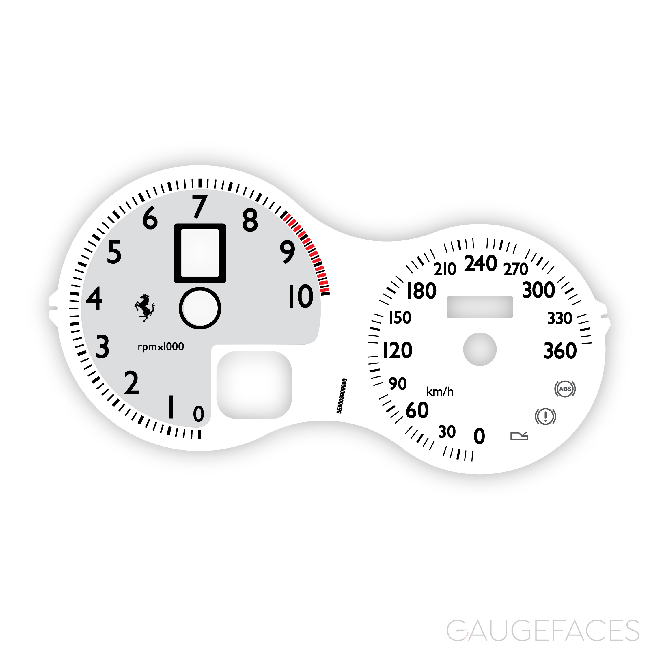 Ferrari F360 (Type F131, 1999-2005) / F430 (Type F131 EVO (F430 2004-2009) Dashboard Gauge Face – Spider Look – OPTIONS – White.