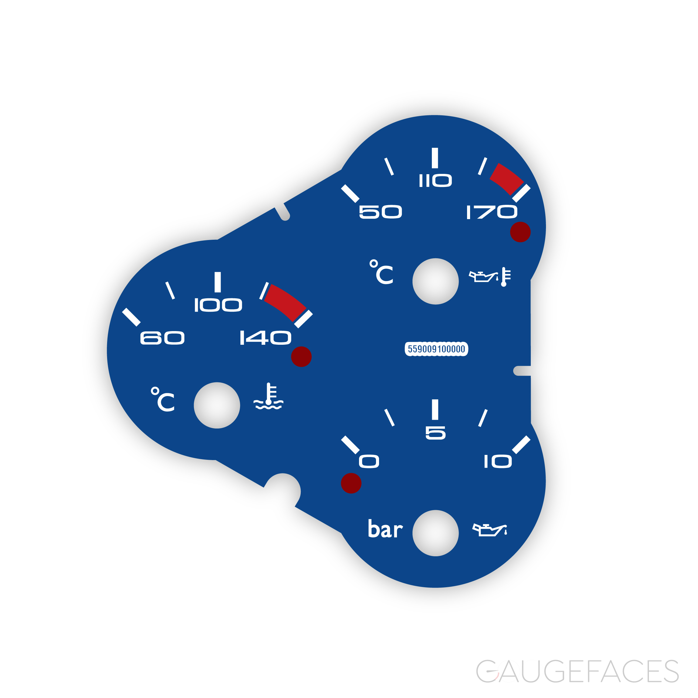 Ferrari F360 (Type F131, 1999-2005) / F430 (Type F131 EVO (F430 2004-2009) Dashboard Temperature / Pressure Gauge Face – Dark Blue.