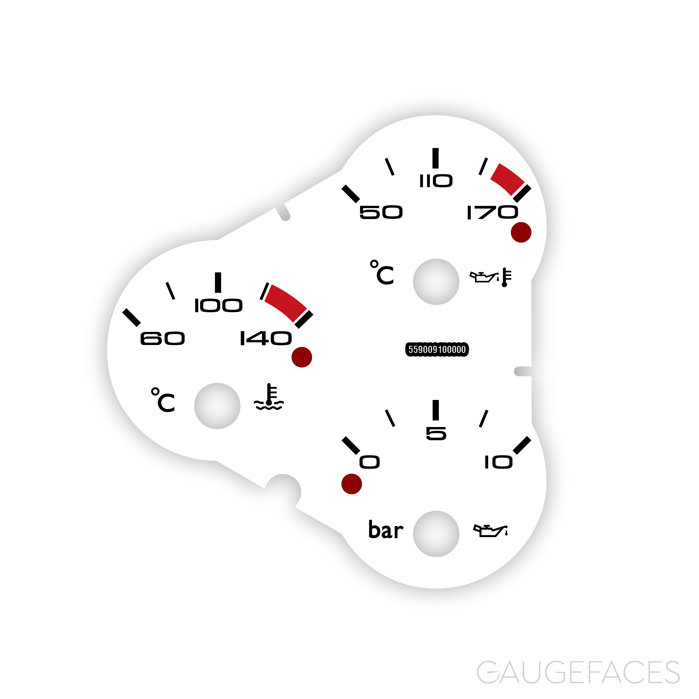 Ferrari F360 (Type F131, 1999-2005) / F430 (Type F131 EVO (F430 2004-2009) Dashboard Temperature / Pressure Gauge Face – White.