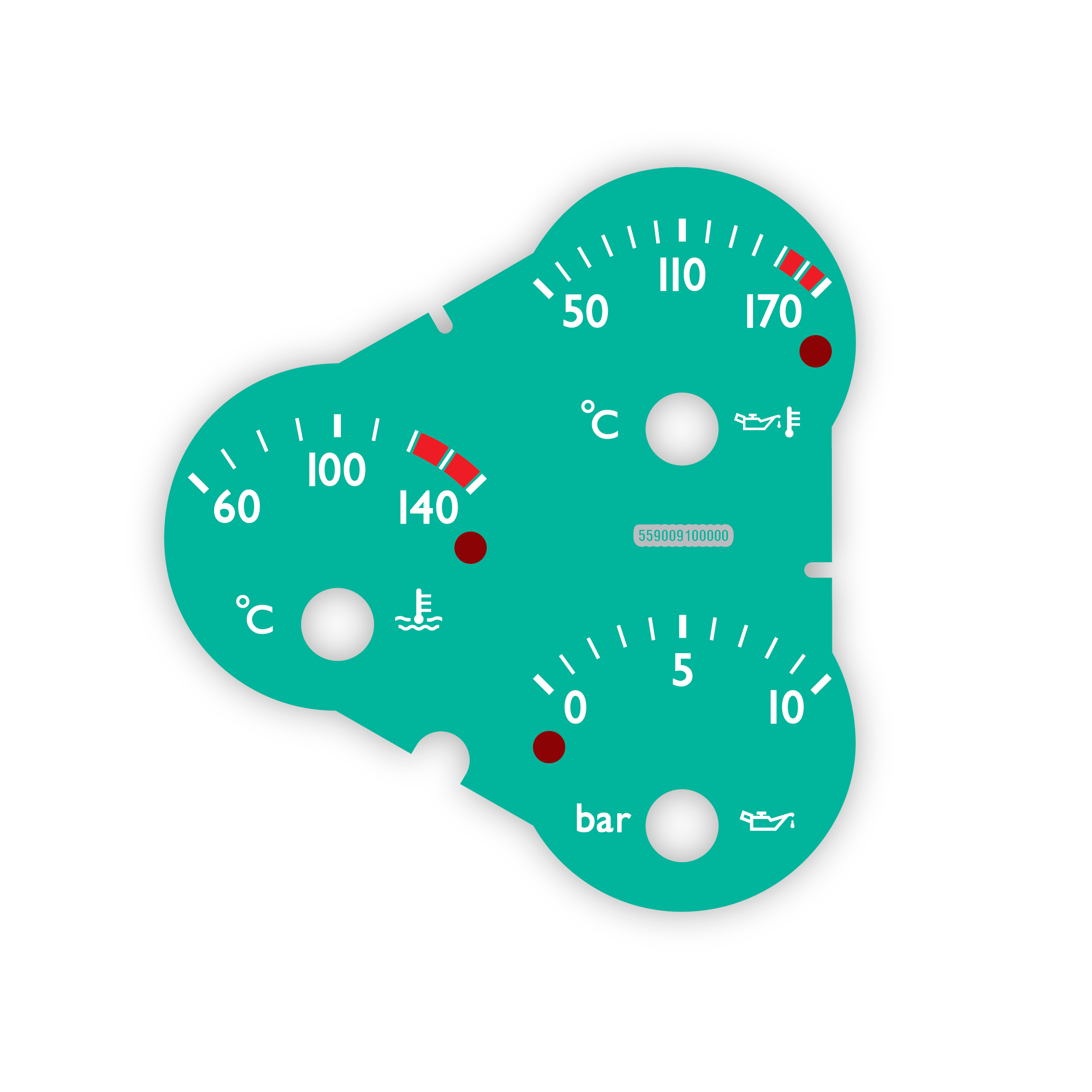 Ferrari F360 (Type F131, 1999-2005) / F430 (Type F131 EVO (F430 2004-2009) Dashboard Temperature / Pressure Gauge Face – Spider Look – Petronas Green – OPTIONS.