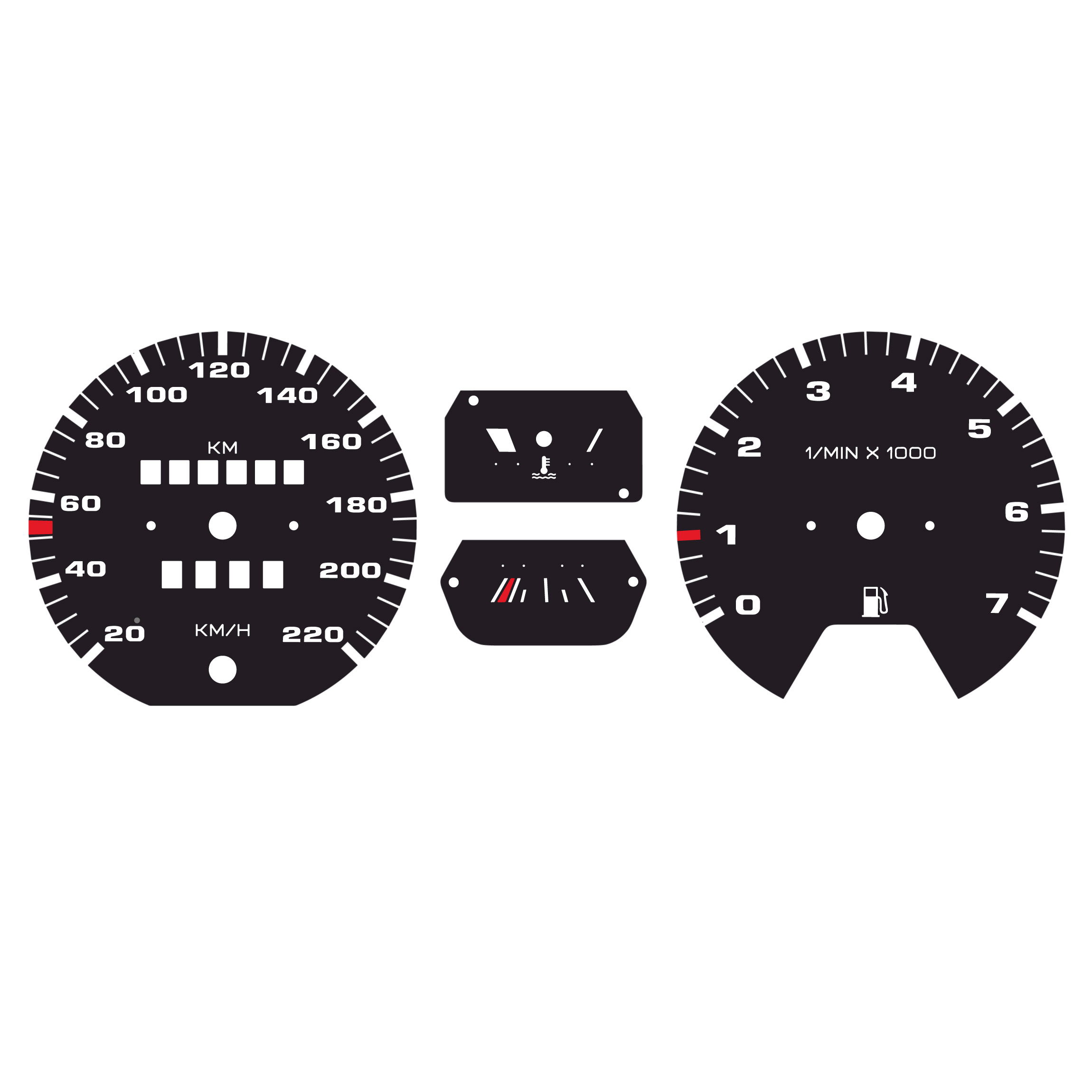 Gauge faces for Volkswagen Golf 2 (GTI 8V, Carat) – Black – 220 km/h .