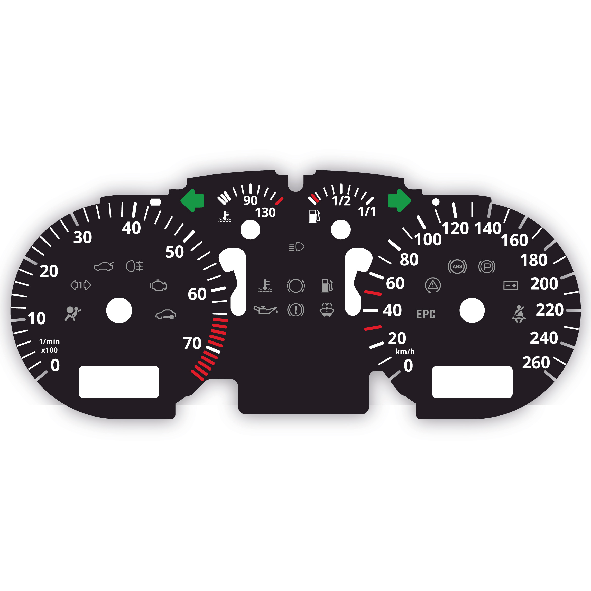 Gauge faces for Volkswagen Golf 4 (1997–2000) – Black – 260 km/h .