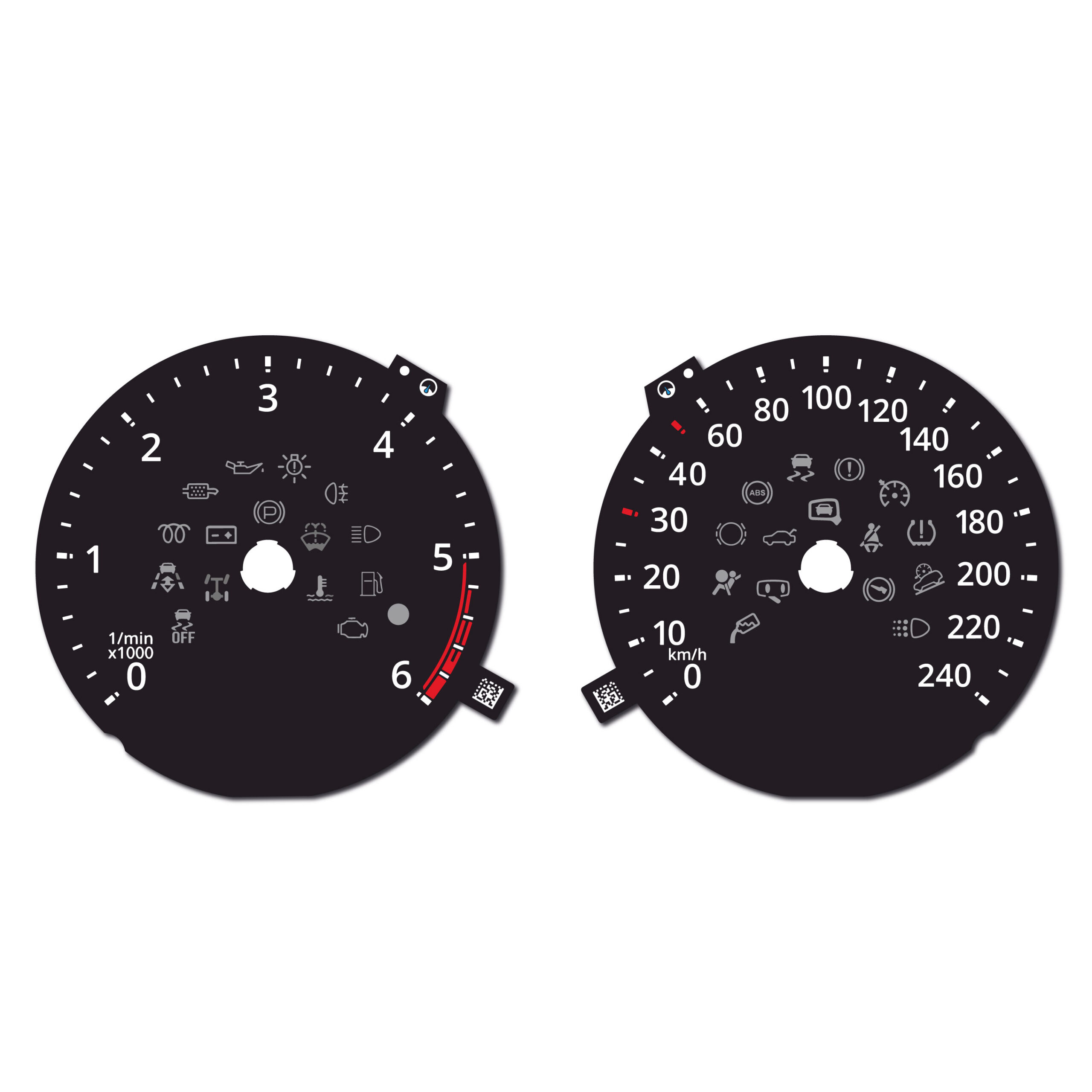 Printed directly on high quality dense plastic with UV printing technology for deep and rich colors. Laser engraving preserves details sharp and crisp. Anti-glint finish makes the surface matt and smooth. The gauge face is pre-cut with precision laser and ready to be installed. All warning lights and icons are the same as original and match OEM placement.