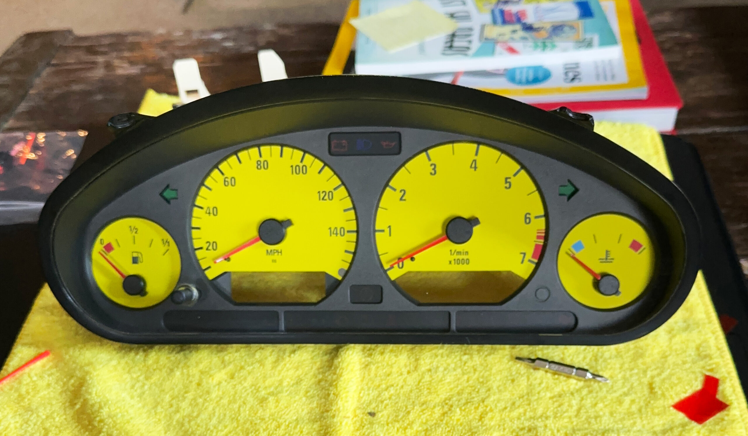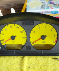 Gauge face for BMW E36 – 7000 RPM – Yellow with Black Numbers.