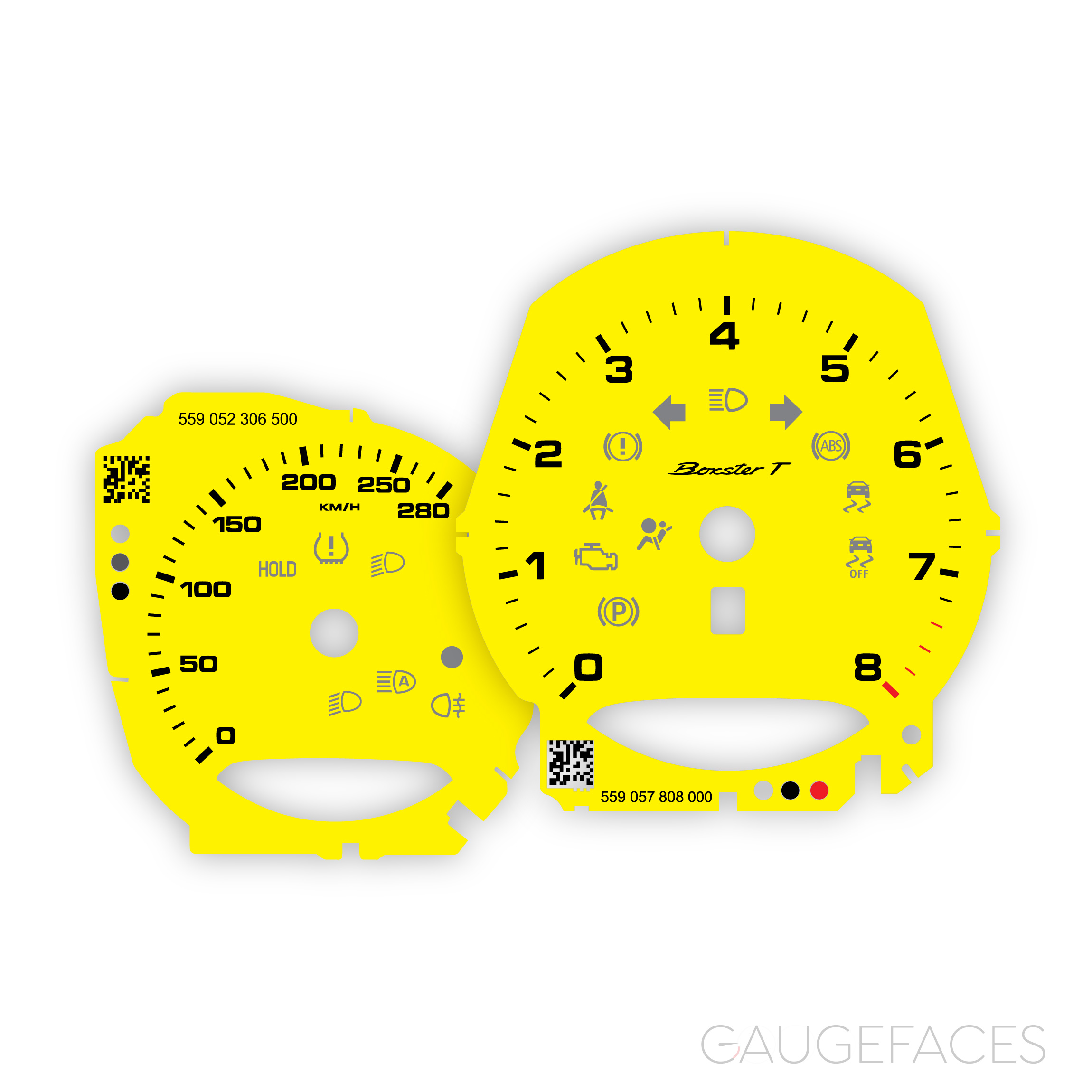 Gauge faces for Porsche 718 Boxster T – 8000 RPM – PDK/manual transmission – OPTION – Racing Yellow.