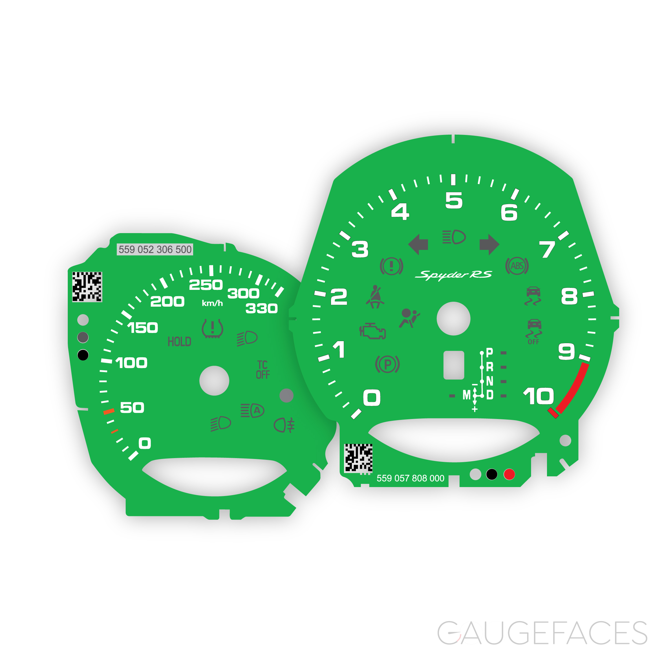 Gauge faces set for Porsche 718 Boxster Spyder RS – 10000 RPM, PDK – Python Green.