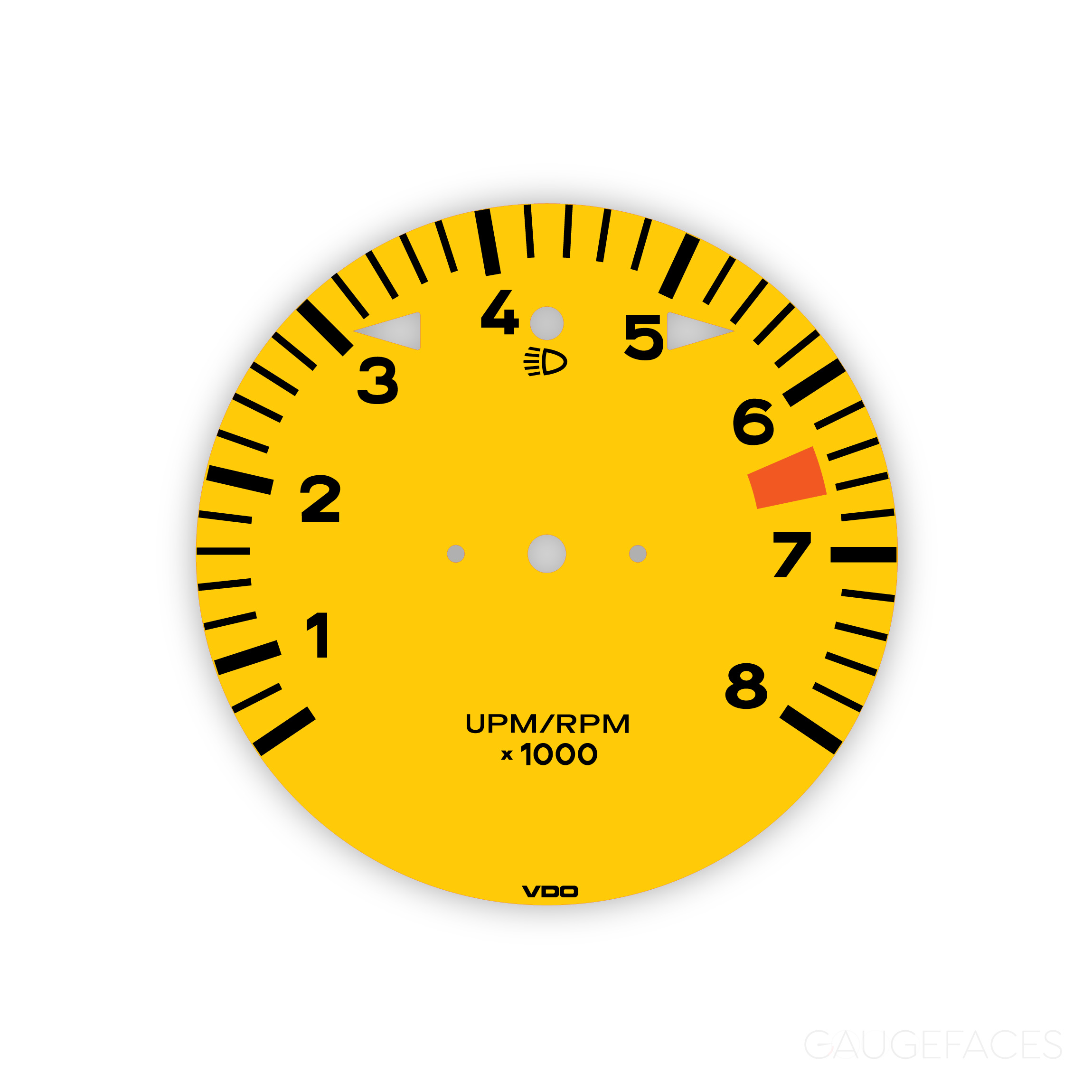 Gauge Face Tachometer for Porsche 911G (1974-77) – 8000 RPM – Speed Yellow.