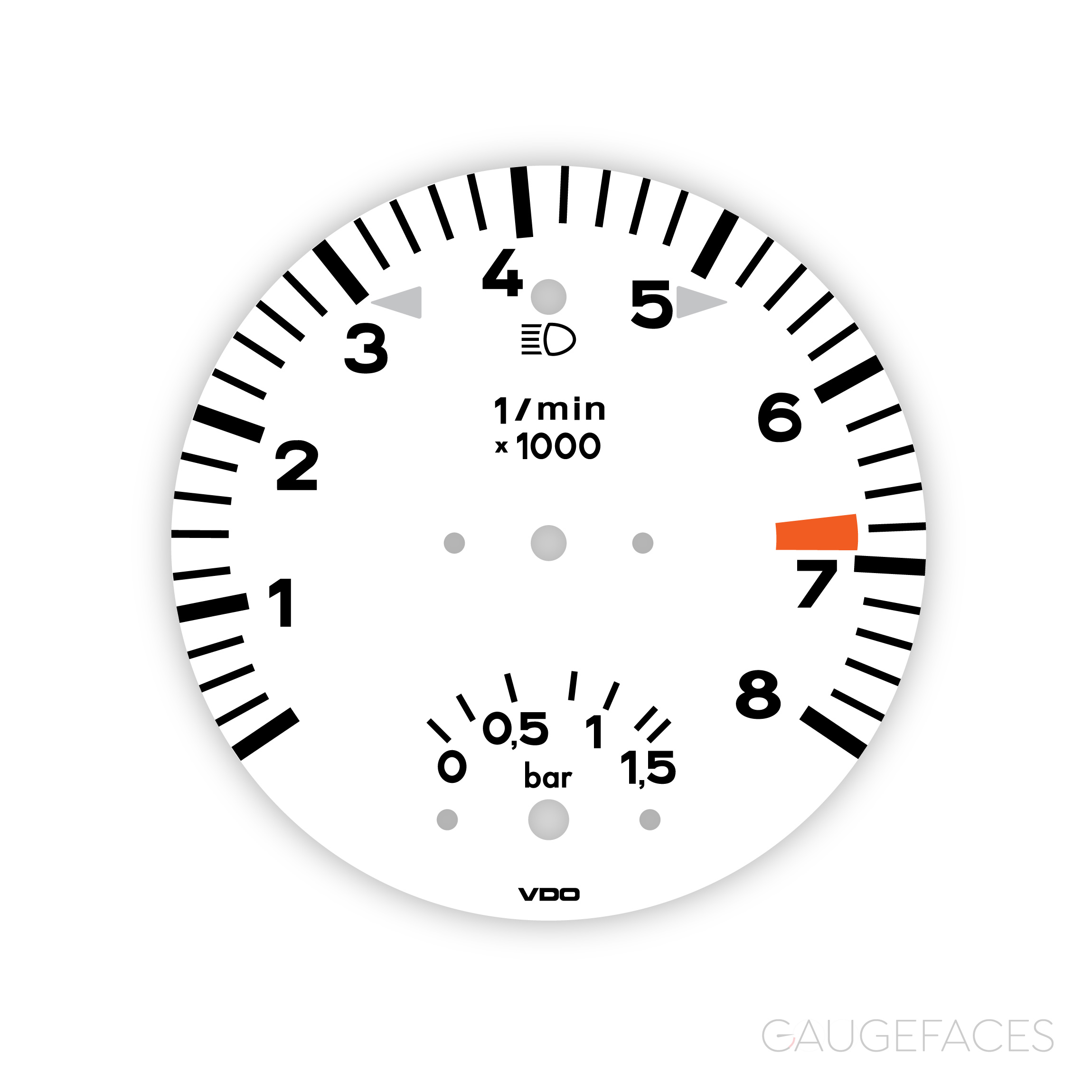 Instrument cluster gauge face tachometer for Porsche 911 930 Turbo 3.0 (1975-77) – 8000 RPM – White.