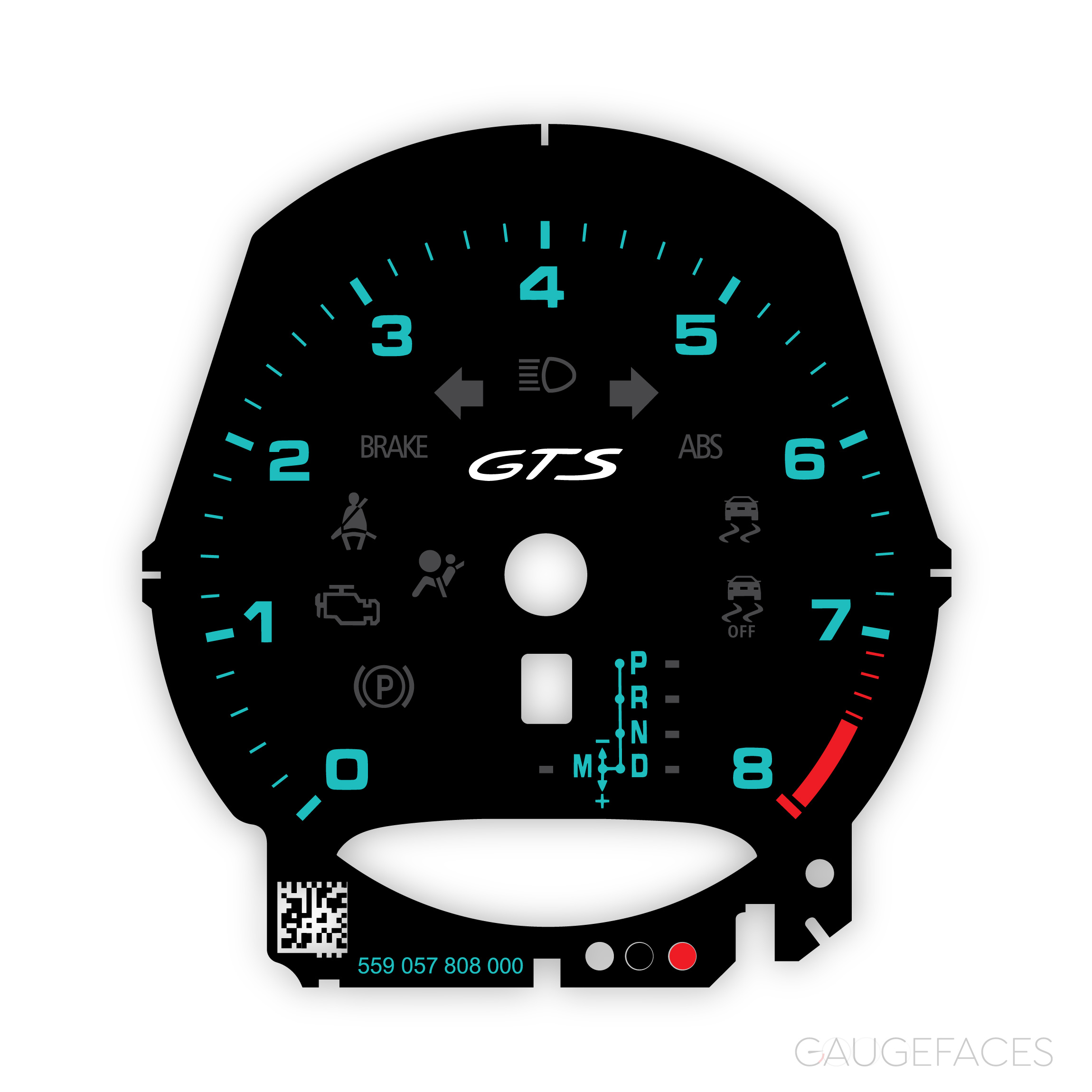 Gauge face tachometer for Porsche 911 991.2 – 8000 RPM – PDK transmission – Black with Blue Lettering – 50th Anniversary Edition.