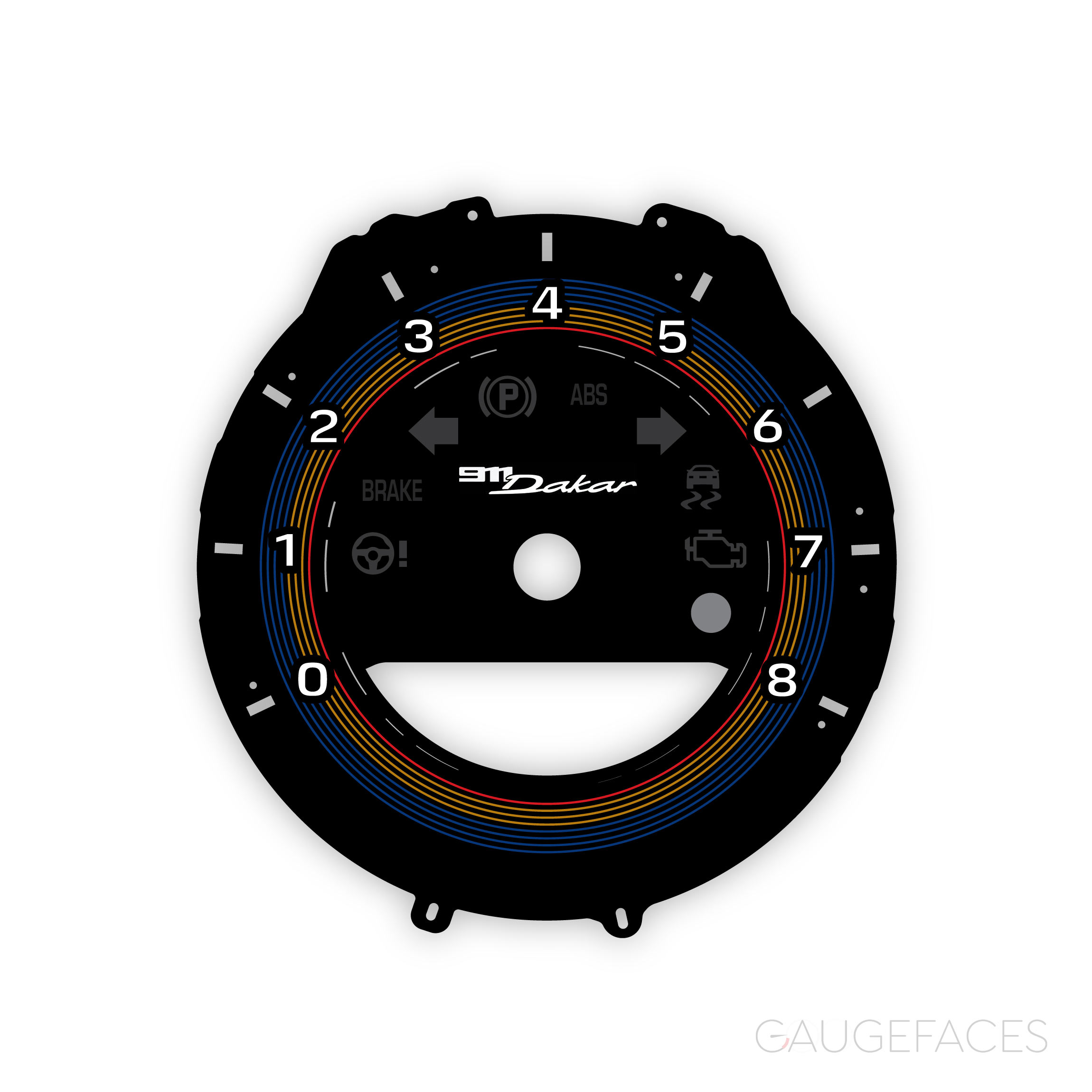 Gauge face tachometer (rev counter) for Porsche 911 992, 8000 RPM, 911 Dakar logotype – Blue / Gold / Red Accent Track.