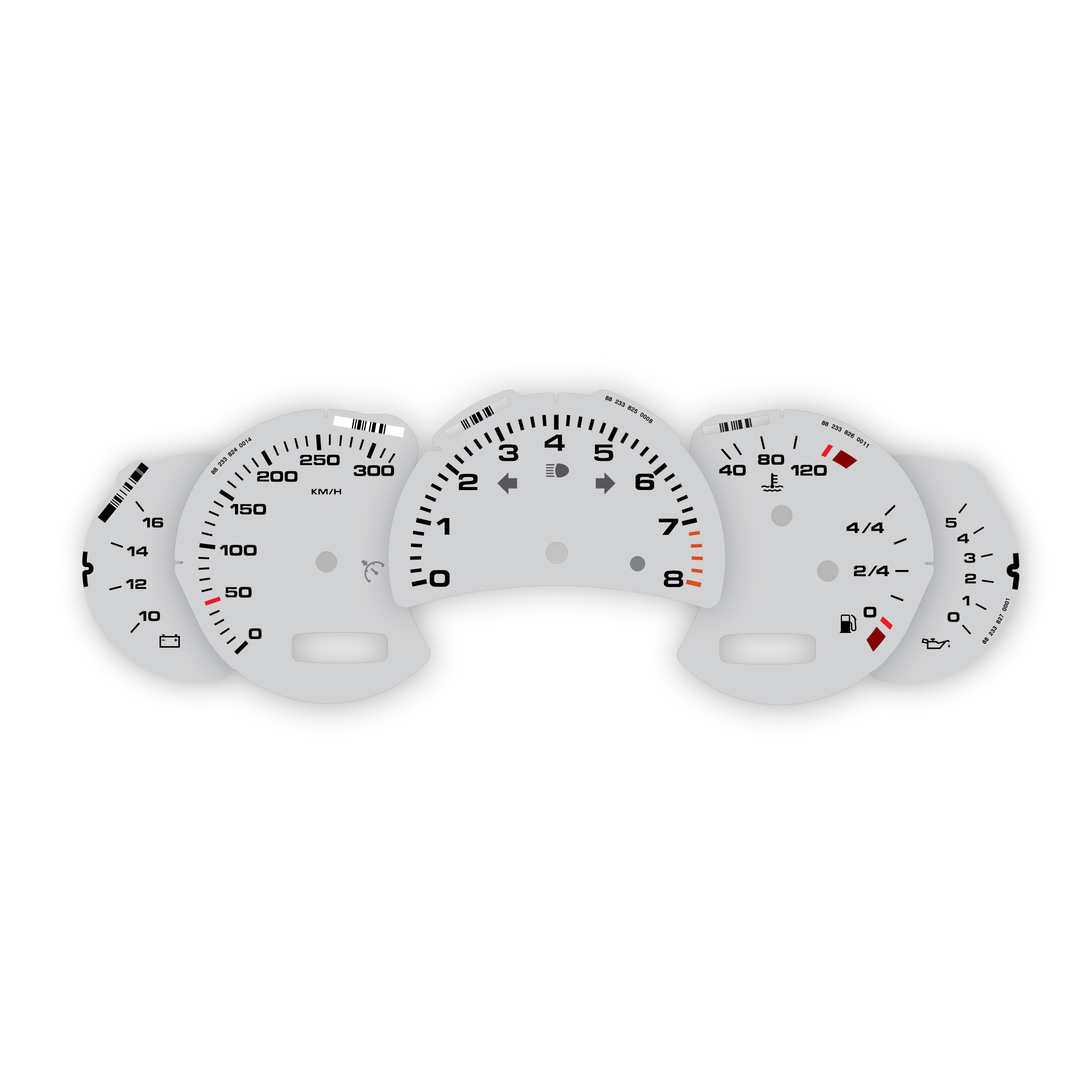 Instrument gauge faces set for Porsche 911 996.1 / 996.2 – 8000 RPM – Light Gray .
