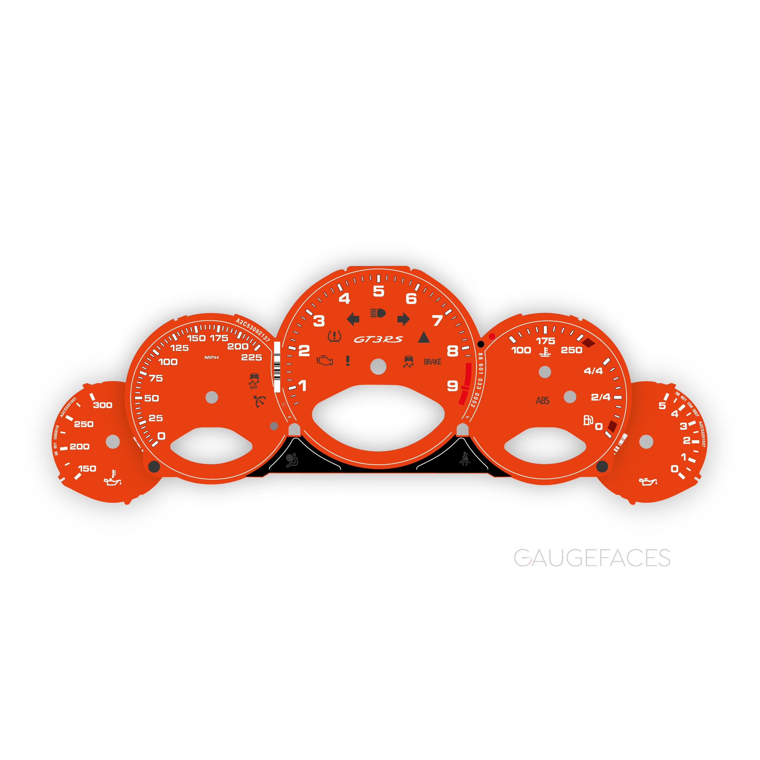 Porsche 911 997 (Gen 1&2) GT3 / GT3 RS / RS 4.0 gauge faces set – 9000 RPM, manual transmission – Orange
