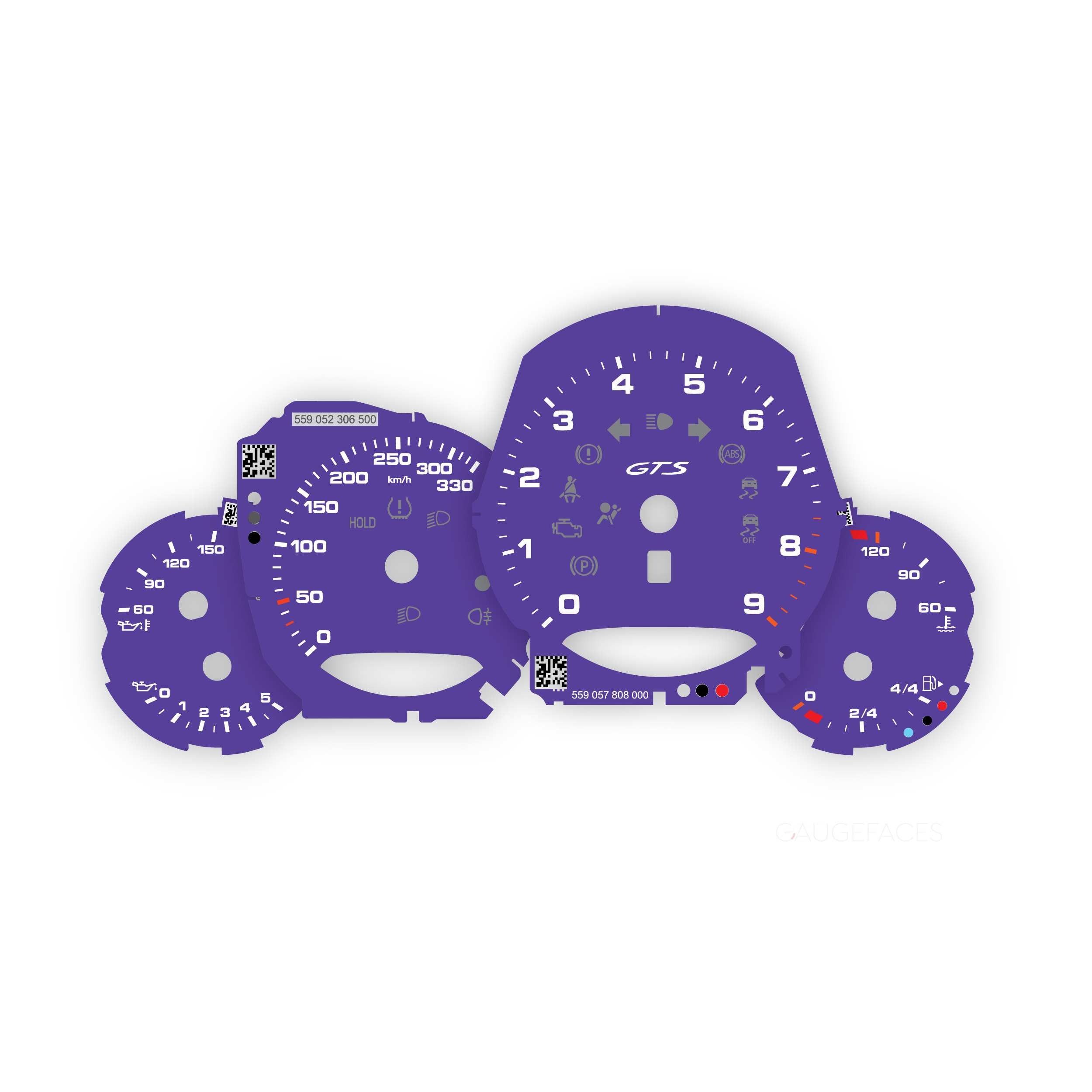 Instrument cluster gauge faces set for Porsche 911 Carrera GTS 991.1 / 991.2 – GTS logotype – Ultraviolet .