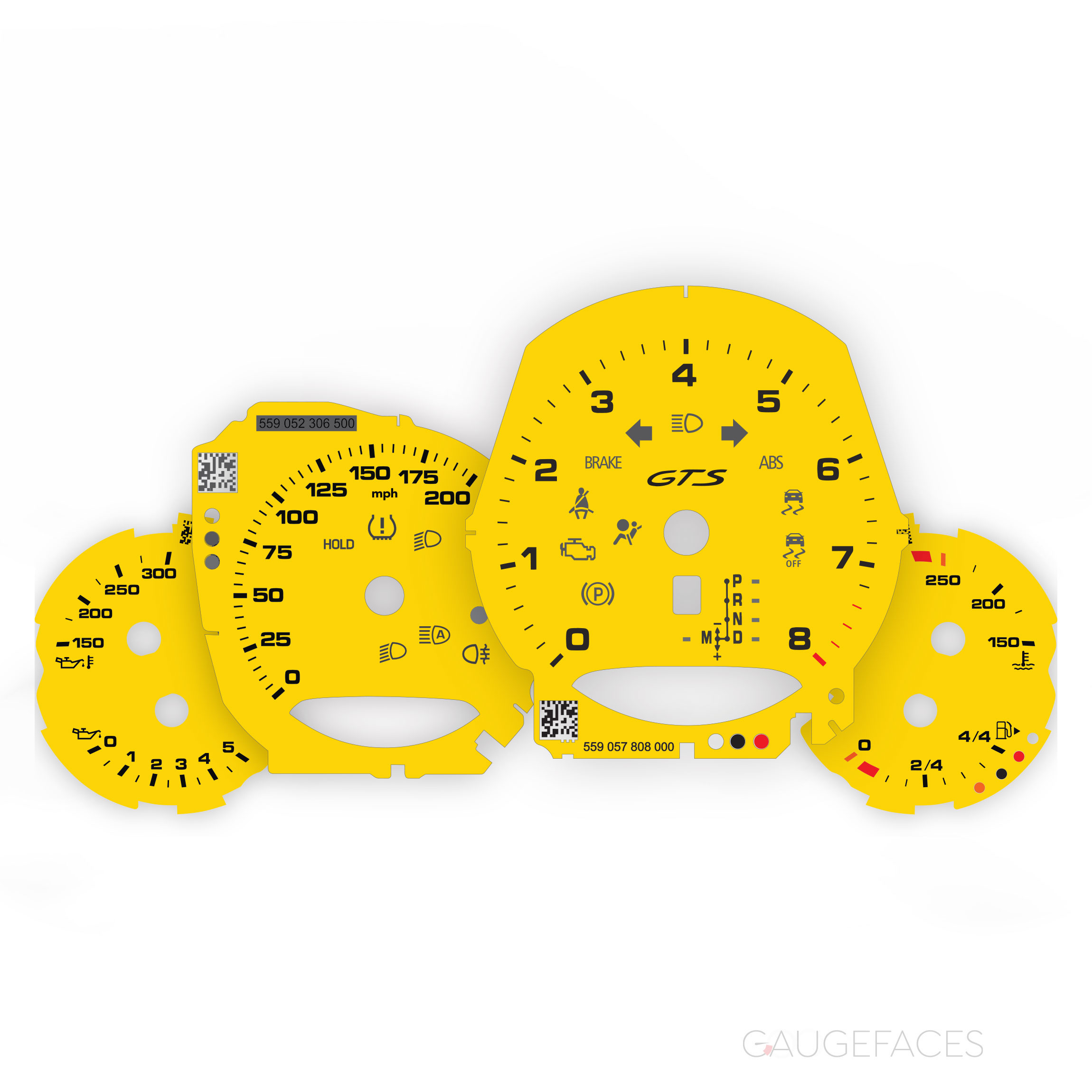 For Porsche 911 Carrera GTS 991.2: Gauge Faces – US – PDK – Racing Yellow