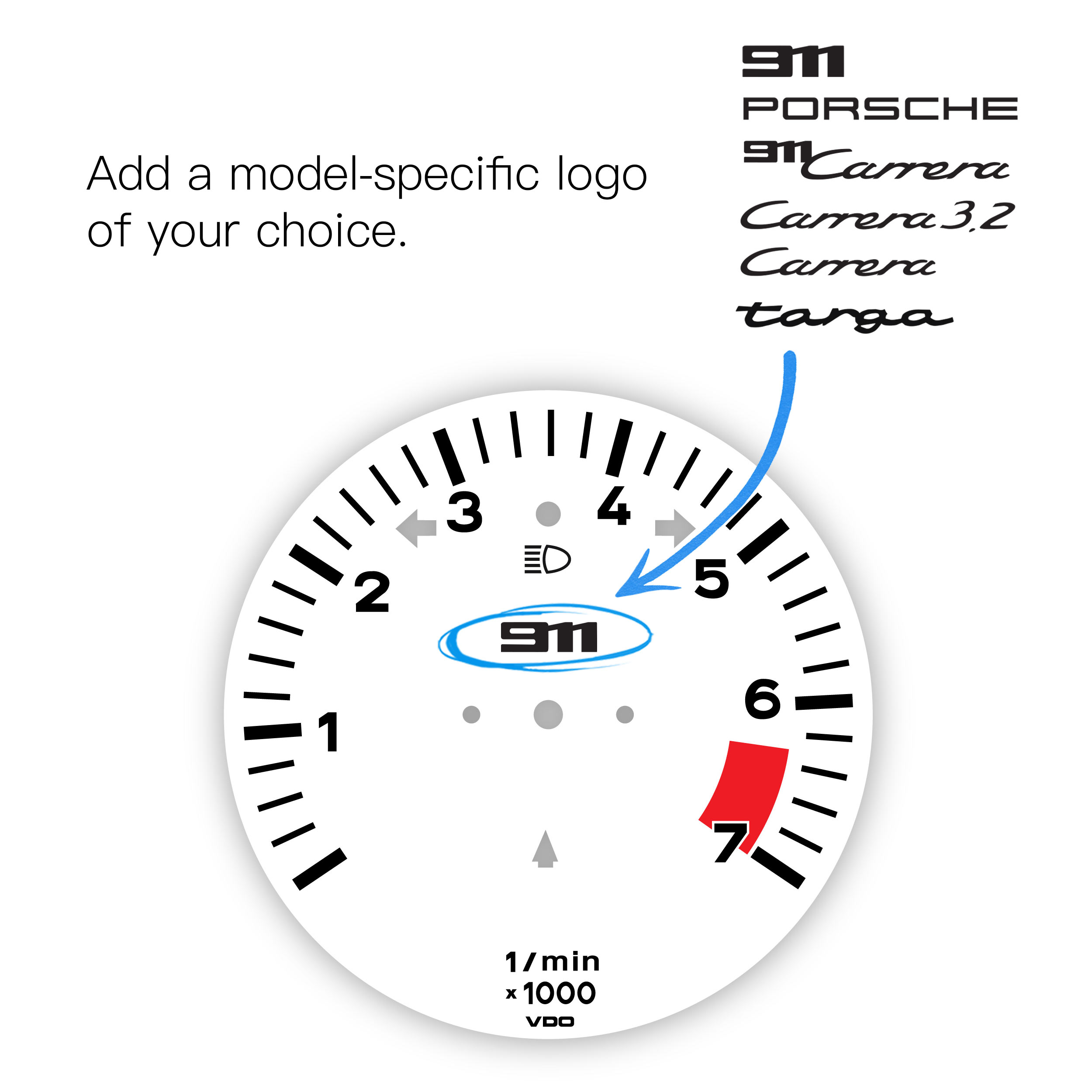 Gauge Face Tachometer for Porsche 911G Carrera 3.2 (1987-89) – 7000 RPM – White.