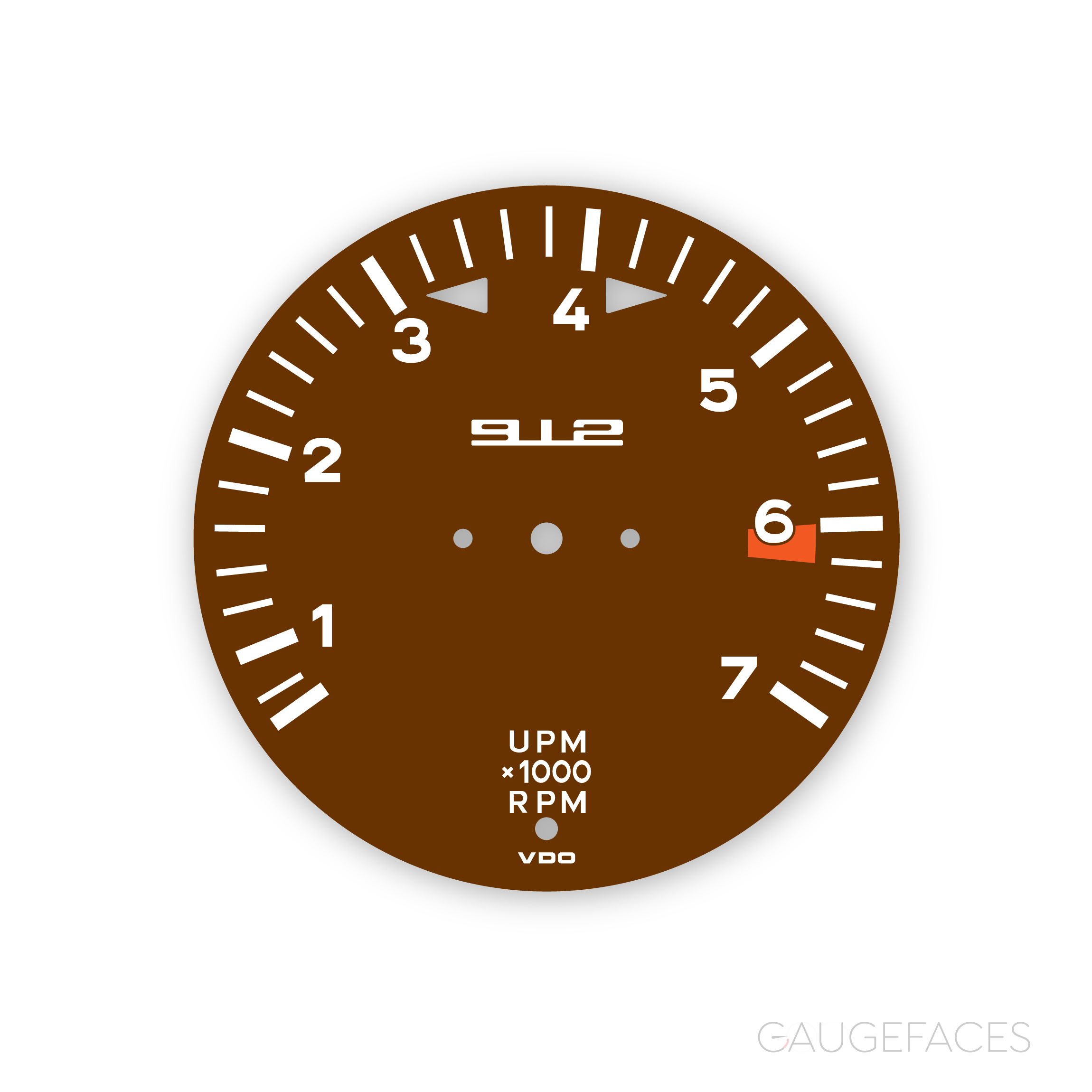 For Porsche 912 (1965–1969): Gauge Face Tachometer – 912 Logo – Coffee Brown