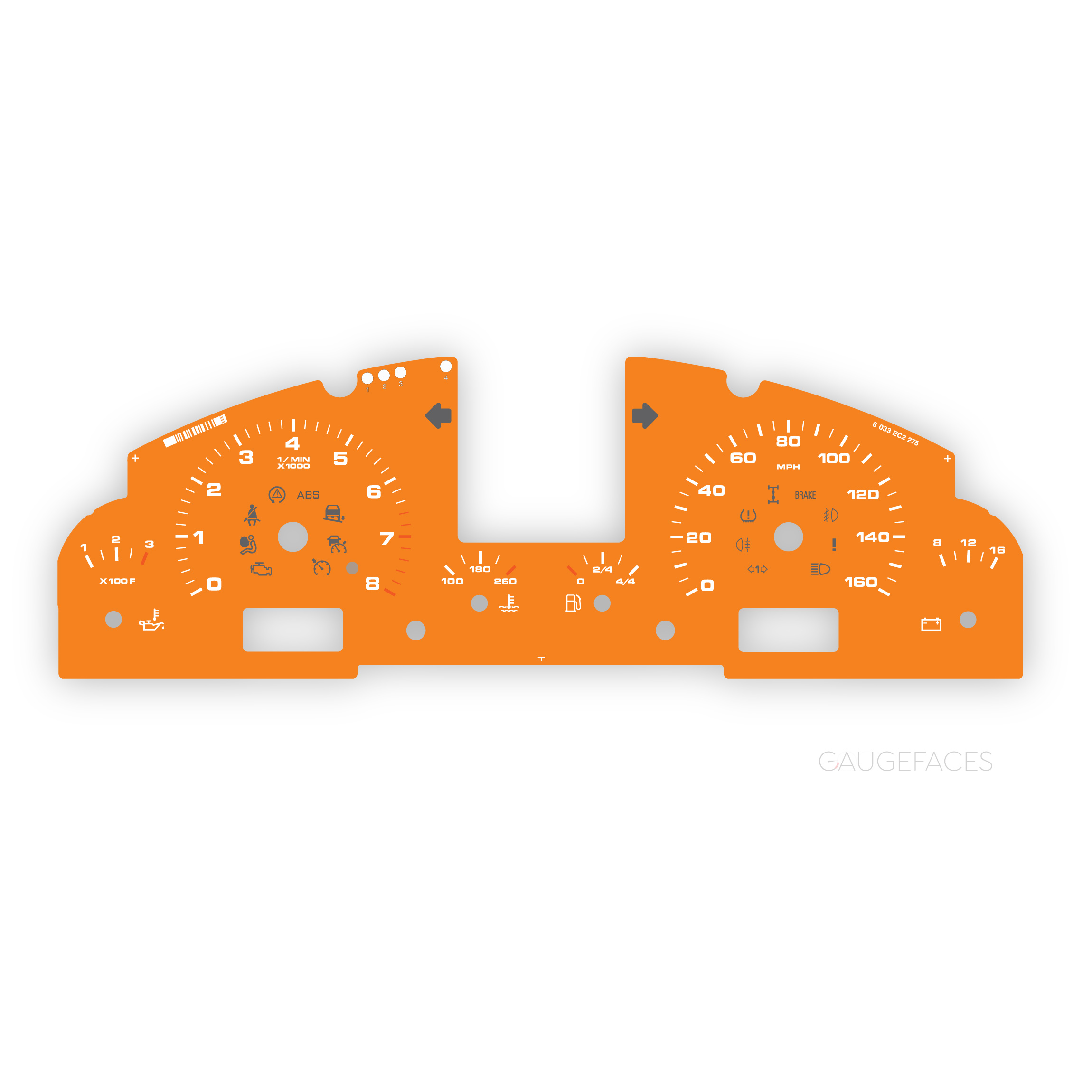 Printed directly on high quality dense plastic with UV printing technology for deep and rich colors. Laser engraving preserves details sharp and crisp. Anti-glint finish makes the surface matt and smooth. The gauge face is pre-cut with precision laser and ready to be installed. All warning lights and icons are the same as original and match OEM placement.
