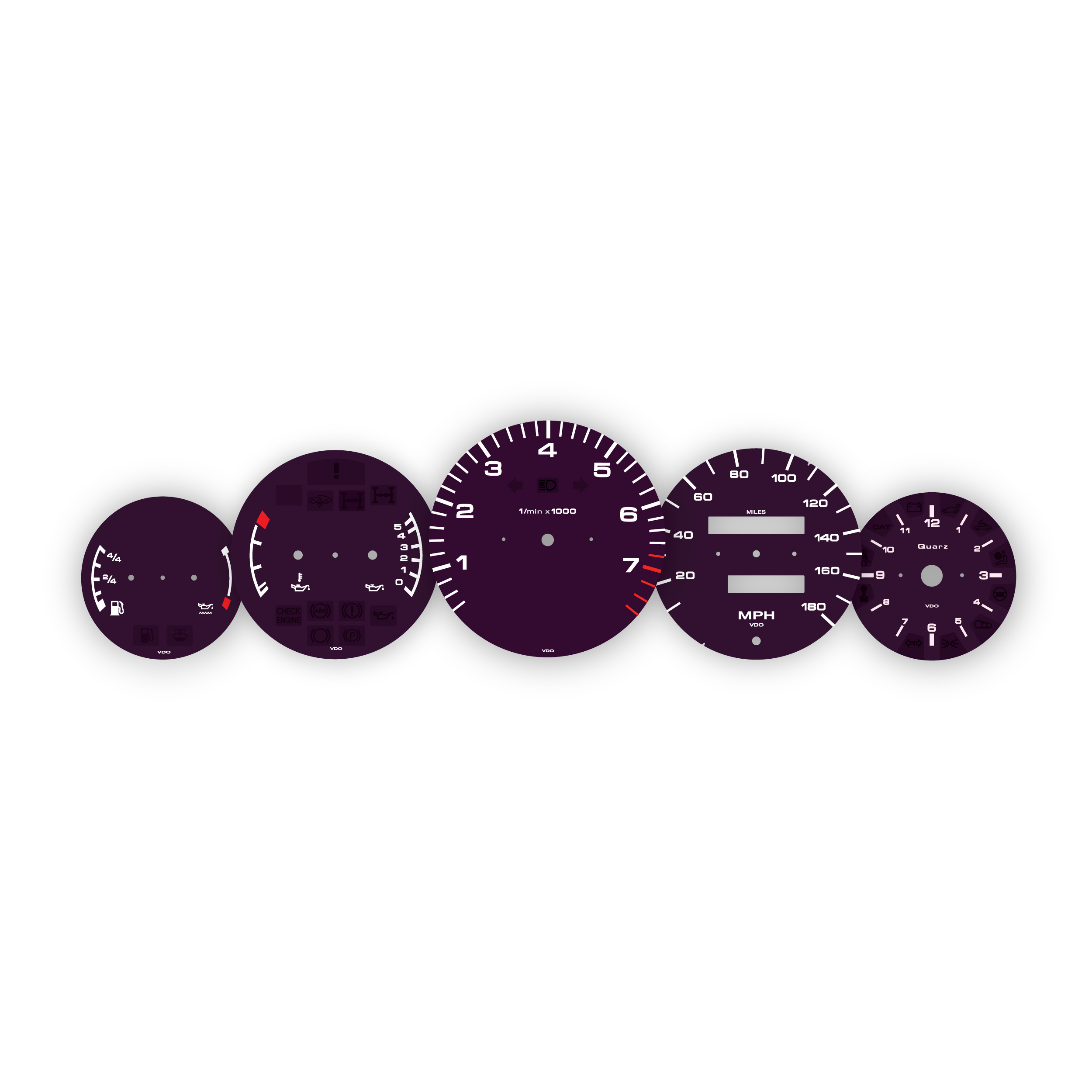 Porsche 964 (1989-94) Instrument Cluster Gauge Faces Set – Standart tachometer – 180 mph speedometer – Vesuvio Metallic.
