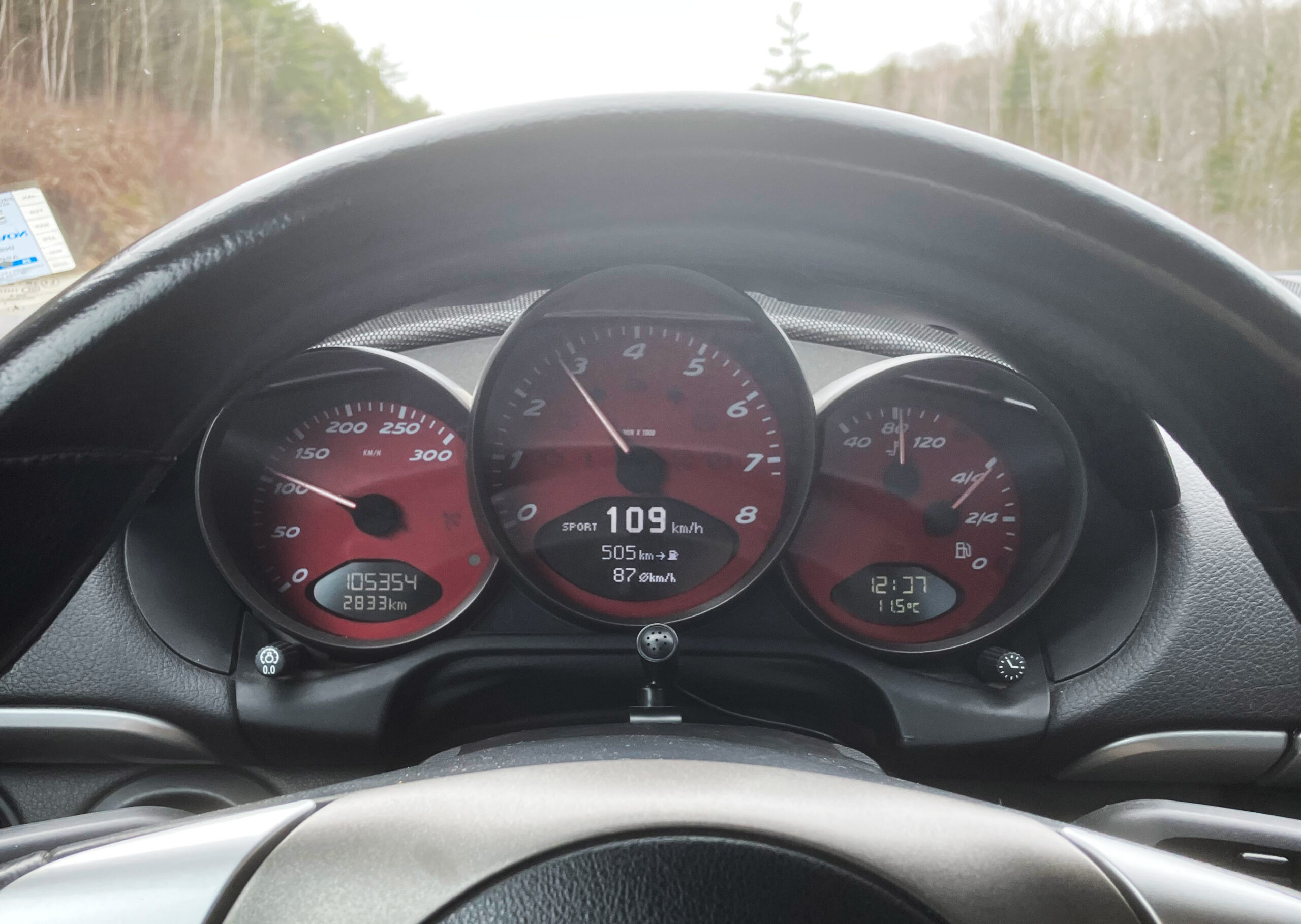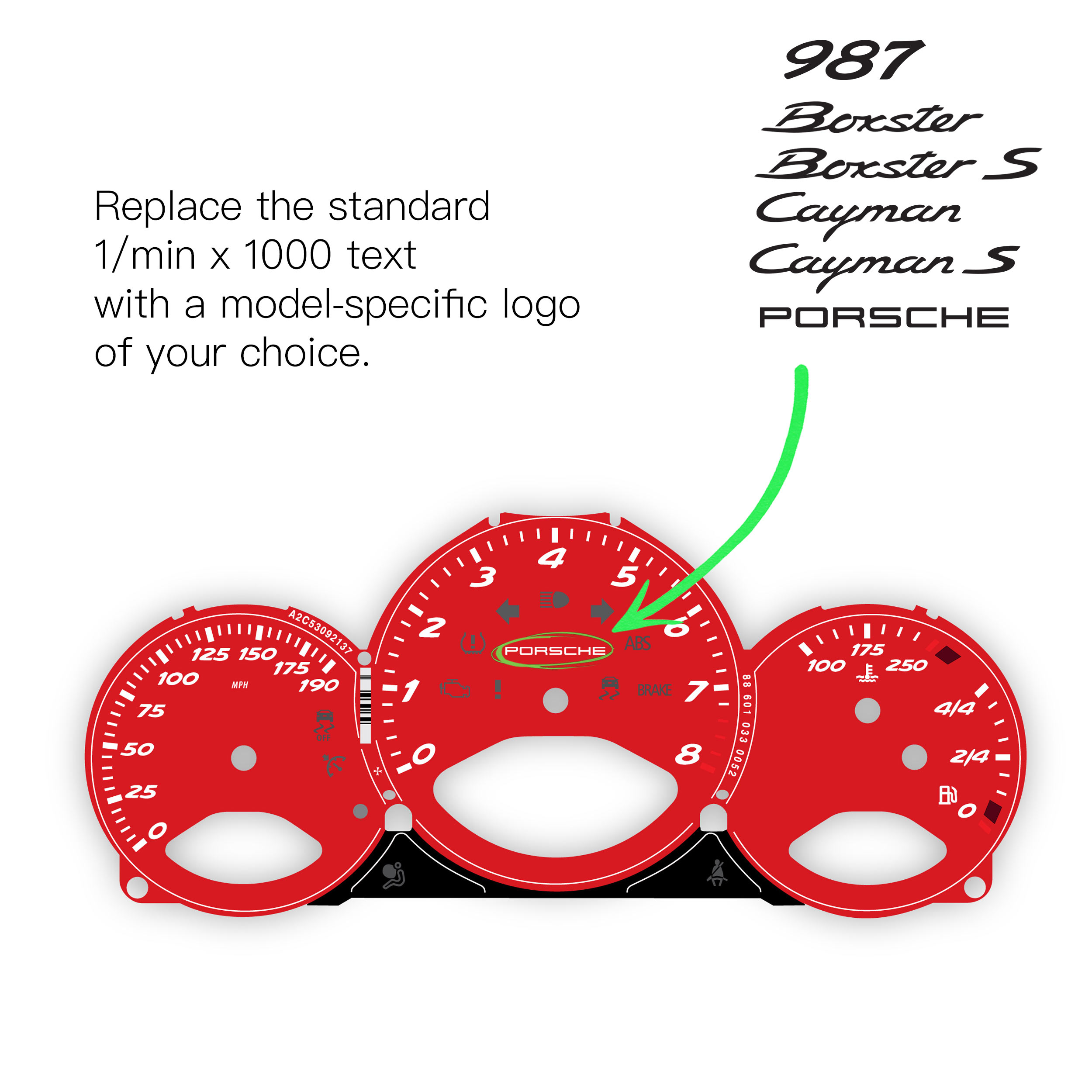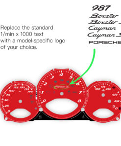 Instrument gauge faces for Porsche 987 Boxster / Cayman – 8000 RPM – Guards Red (OEM font).