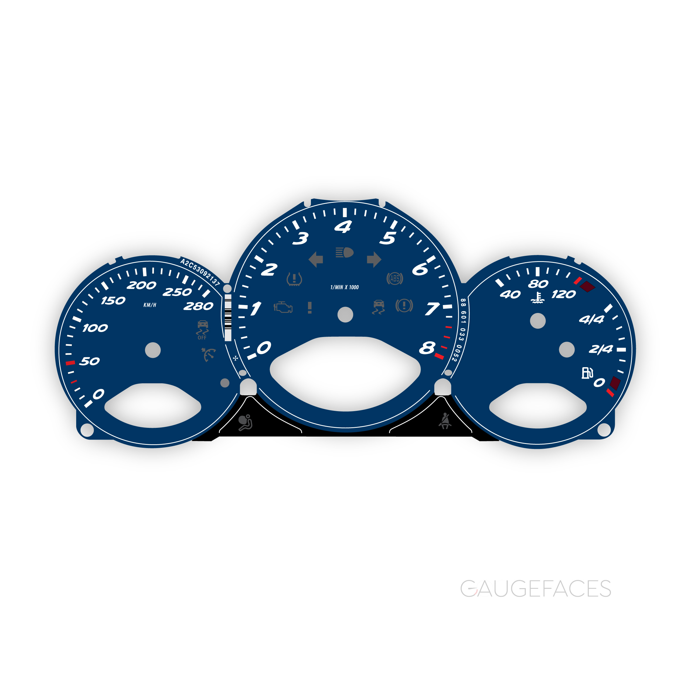 Printed directly on high quality dense plastic with UV printing technology for deep and rich colors. Laser engraving preserves details sharp and crisp. Anti-glint finish makes the surface matt and smooth. The gauge face is pre-cut with precision laser and ready to be installed. All warning lights and icons are the same as original and match OEM placement.