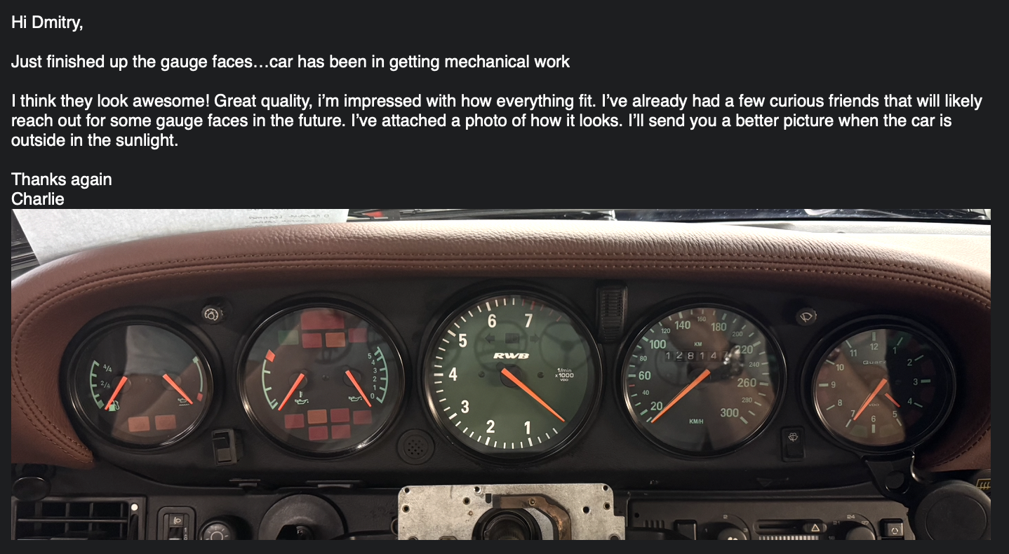 Gauge face tachometer for Porsche 993 / 964 / 965 1989-94 – 7600 RPM – RWB Logo – Green.