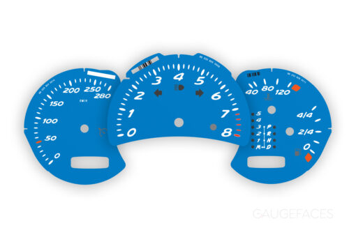 Gauge faces set for Porsche Boxster 986.2 S 3.2L – 8000 RPM – Manual/Tiptronic – Shark Blue OEM font.