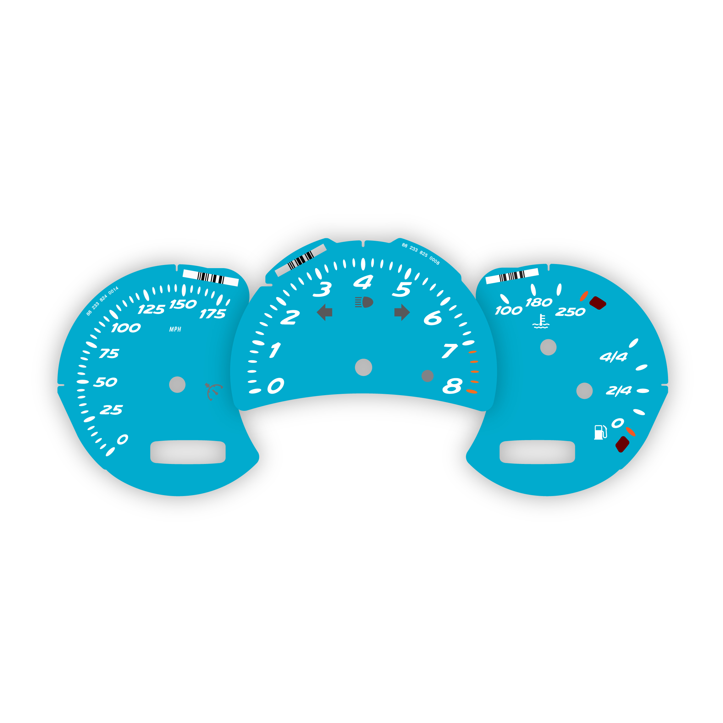 Printed directly on high quality dense plastic with UV printing technology for deep and rich colors. Laser engraving preserves details sharp and crisp. Anti-glint finish makes the surface matt and smooth. The gauge face is pre-cut with precision laser and ready to be installed. All warning lights and icons are the same as original and match OEM placement.