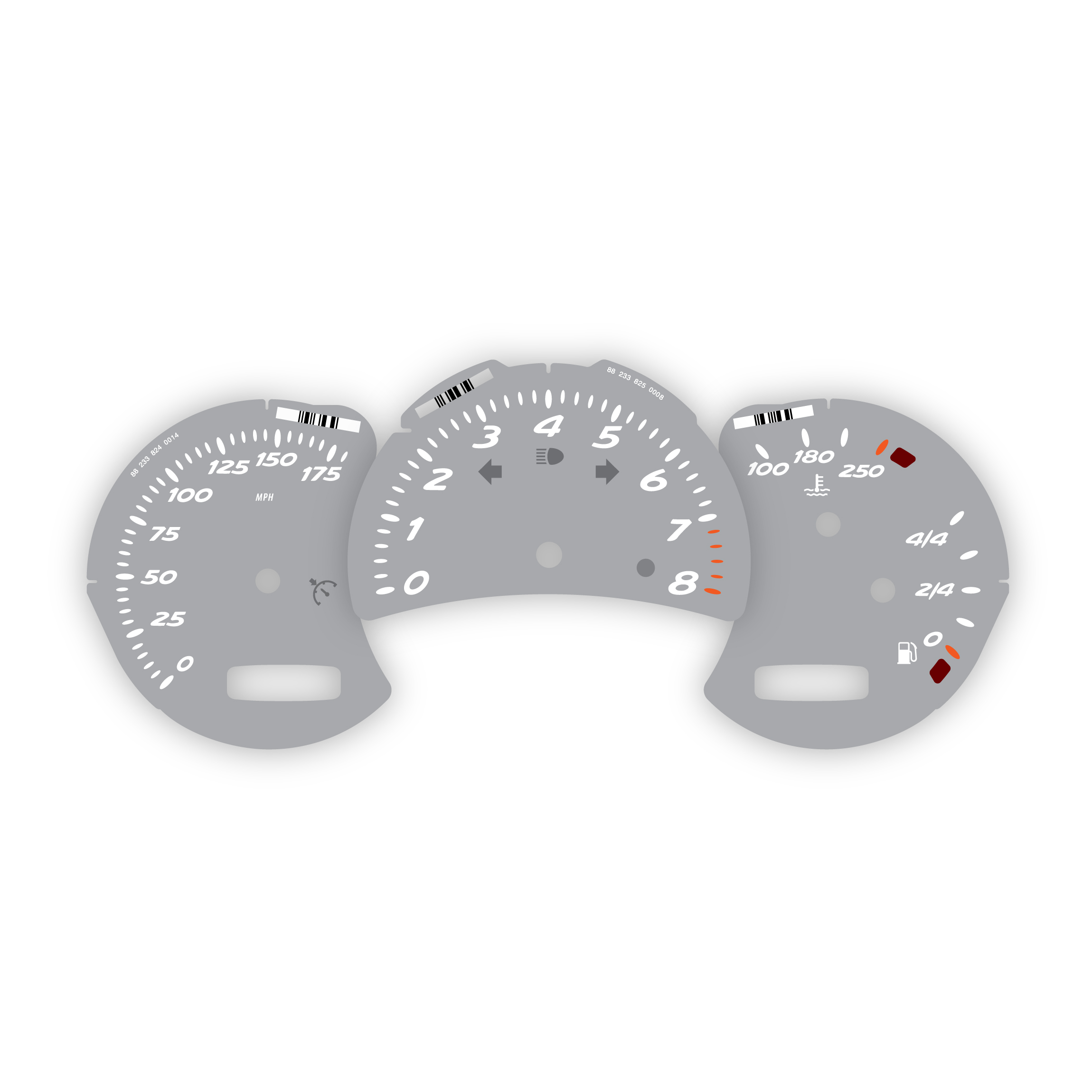 Instrument gauge faces for Porsche Boxster 986.1 / 986.2 – 8000 RPM – Gray (OEM Font).
