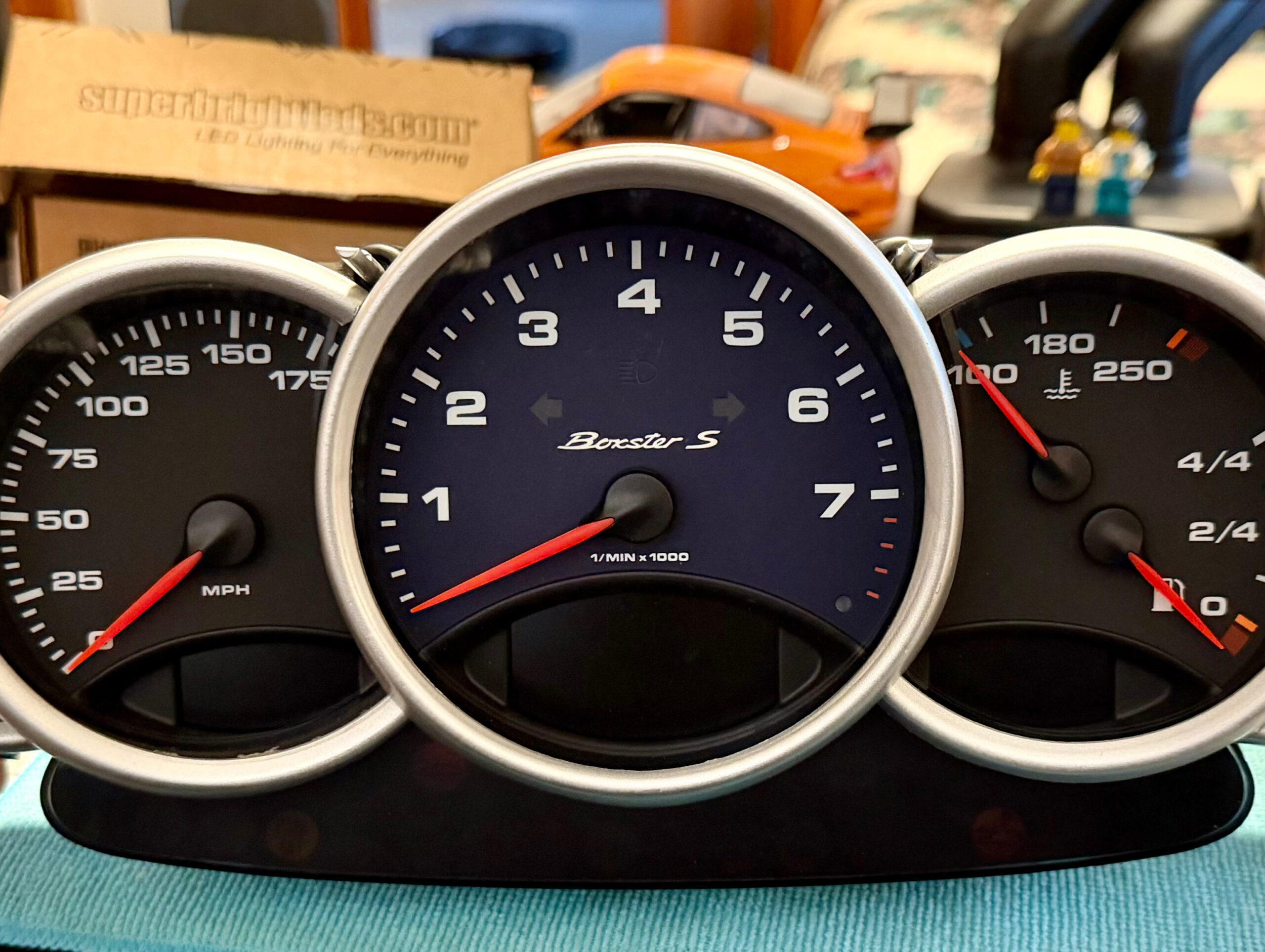 Instrument gauge face tachometer (rev counter) for Porsche 911 996.1 / Boxster 986.1 – 8000 RPM – Black.