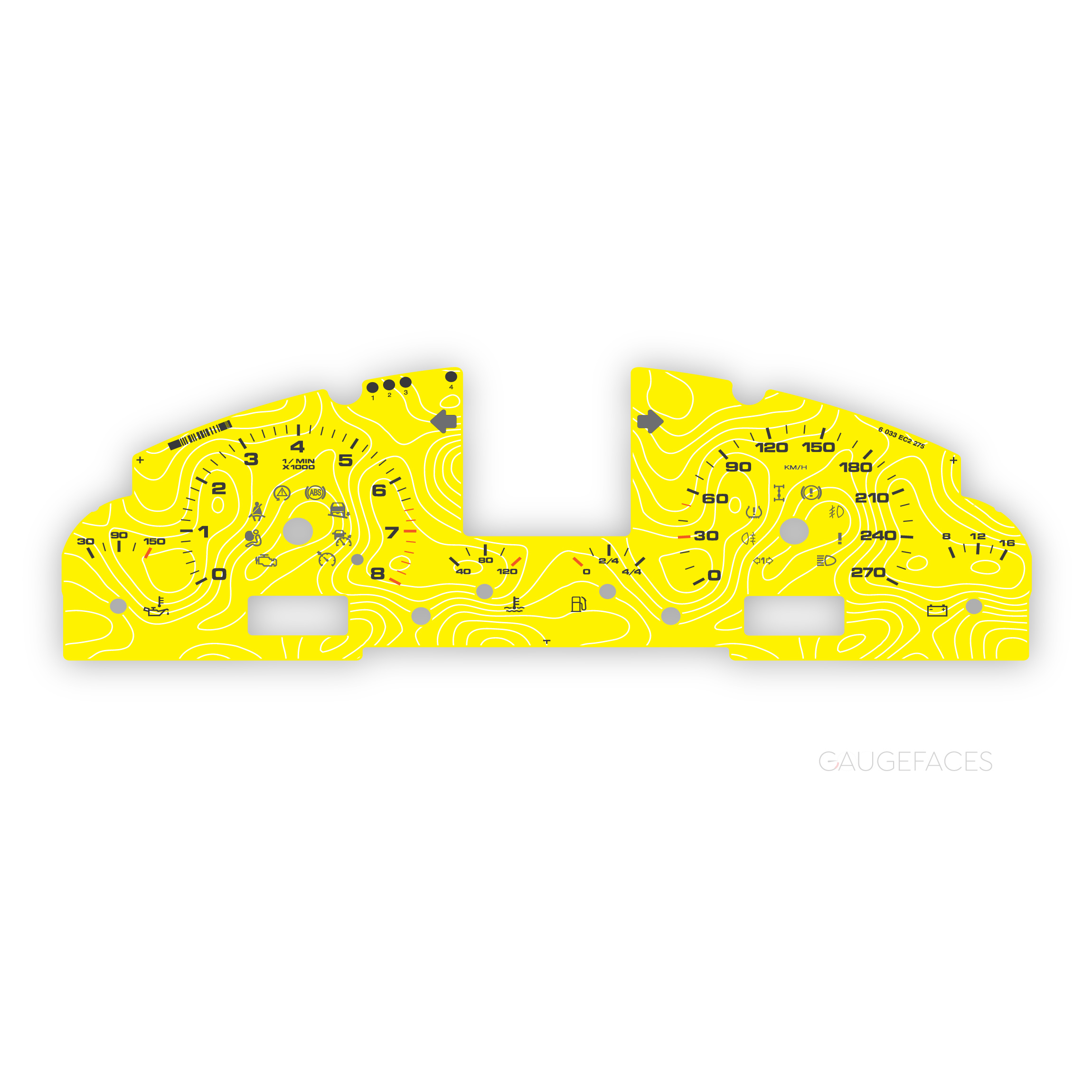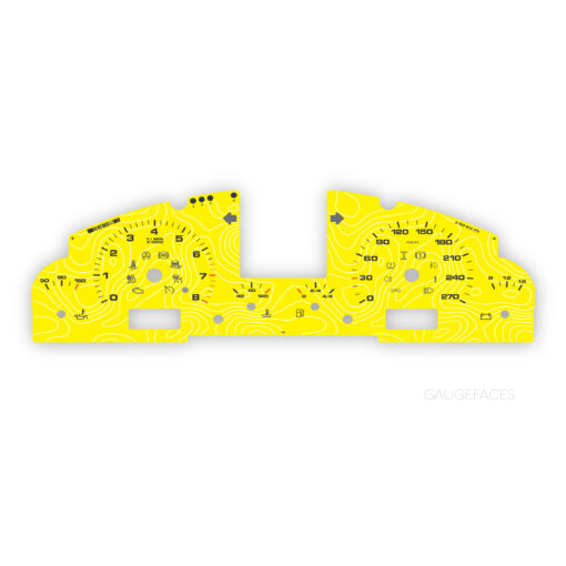 Porsche 955 / 957 Cayenne 3.2L / S 4.5 and S 4.7L / GTS instrument dial face for 8000 RPM, 270 km/h – Yellow with Topographic Livery Design.